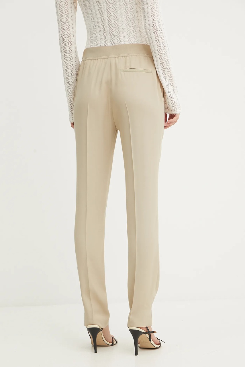 BOSS spodnie damskie kolor beżowy dopasowane high waist 50541990