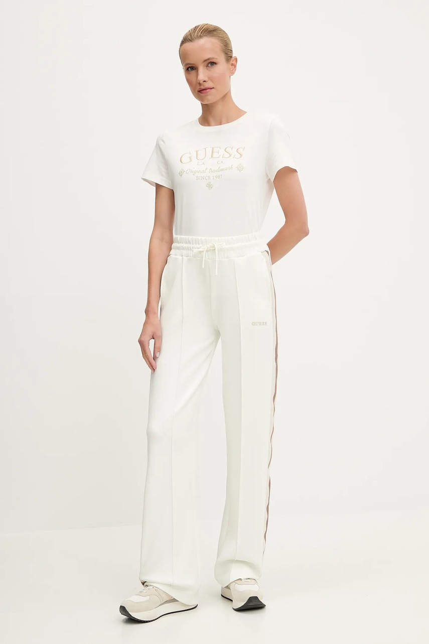Guess spodnie dresowe YARROW damskie kolor beżowy z nadrukiem V5GB12 KCRU2