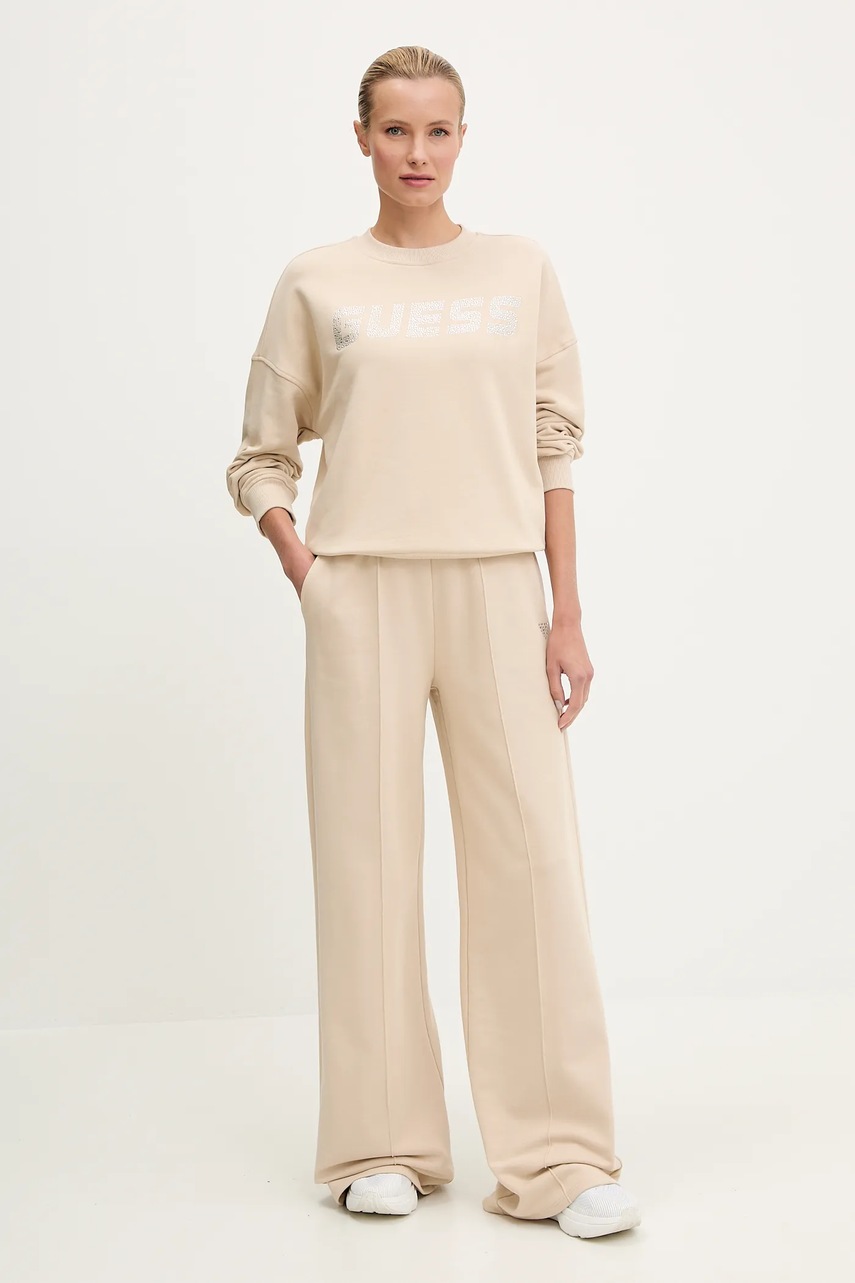Guess spodnie dresowe bawełniane PRIMULA damskie kolor beżowy gładkie V5GB07 KCRP0