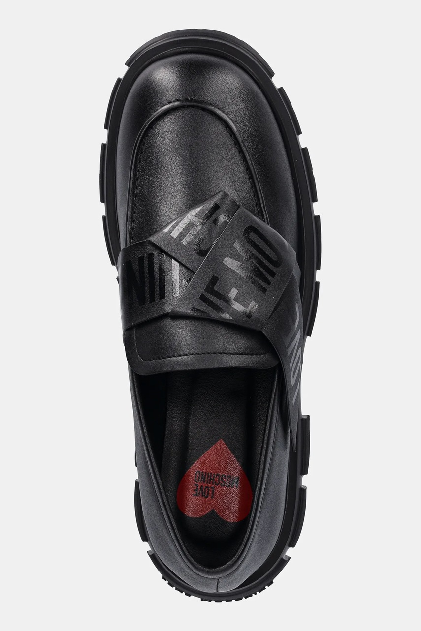 Love Moschino mokasyny skórzane damskie kolor czarny na płaskim obcasie JA10155G1NIAX000