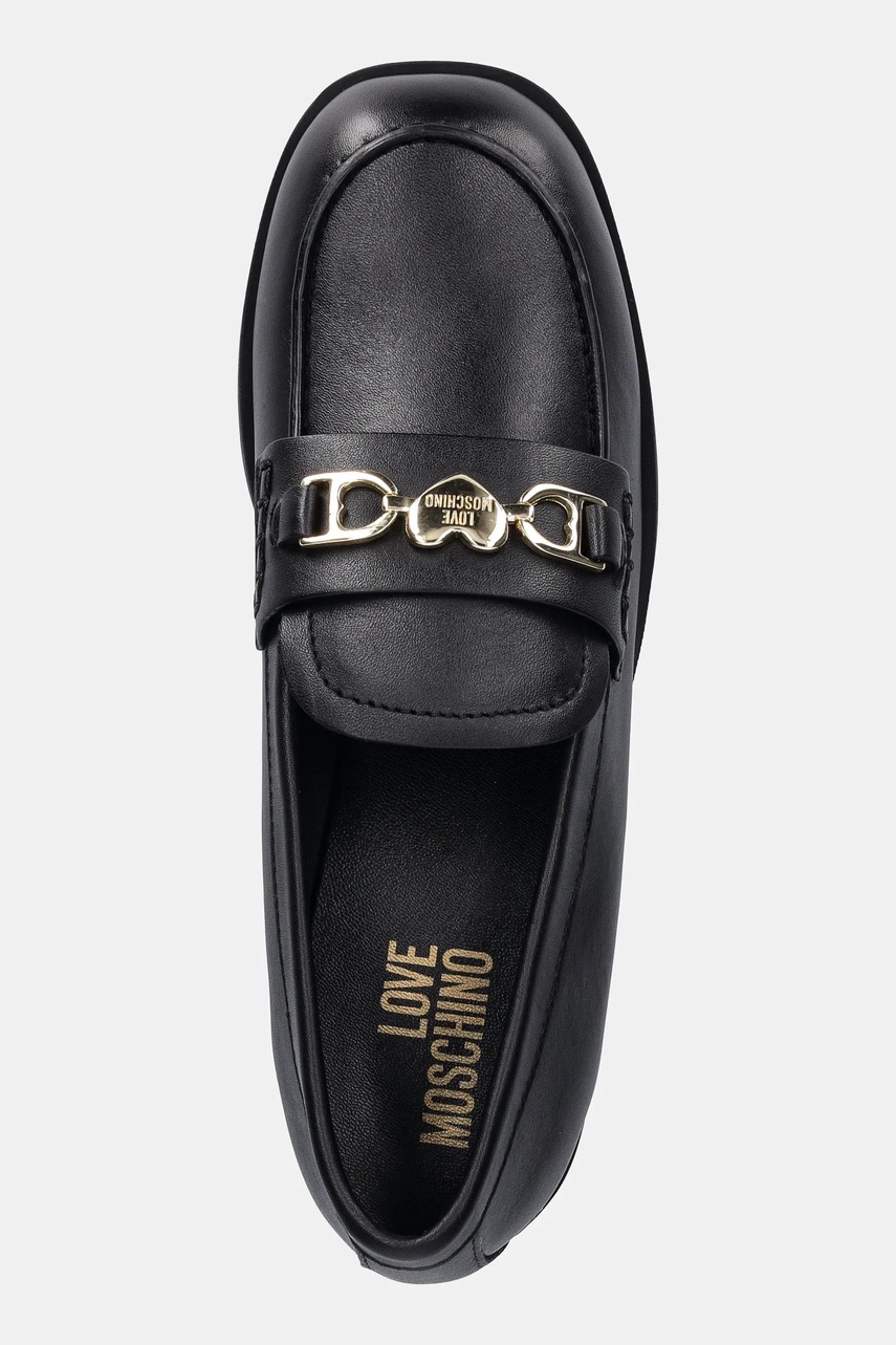 Love Moschino mokasyny skórzane damskie kolor czarny na płaskim obcasie JA10242G1NIA0000