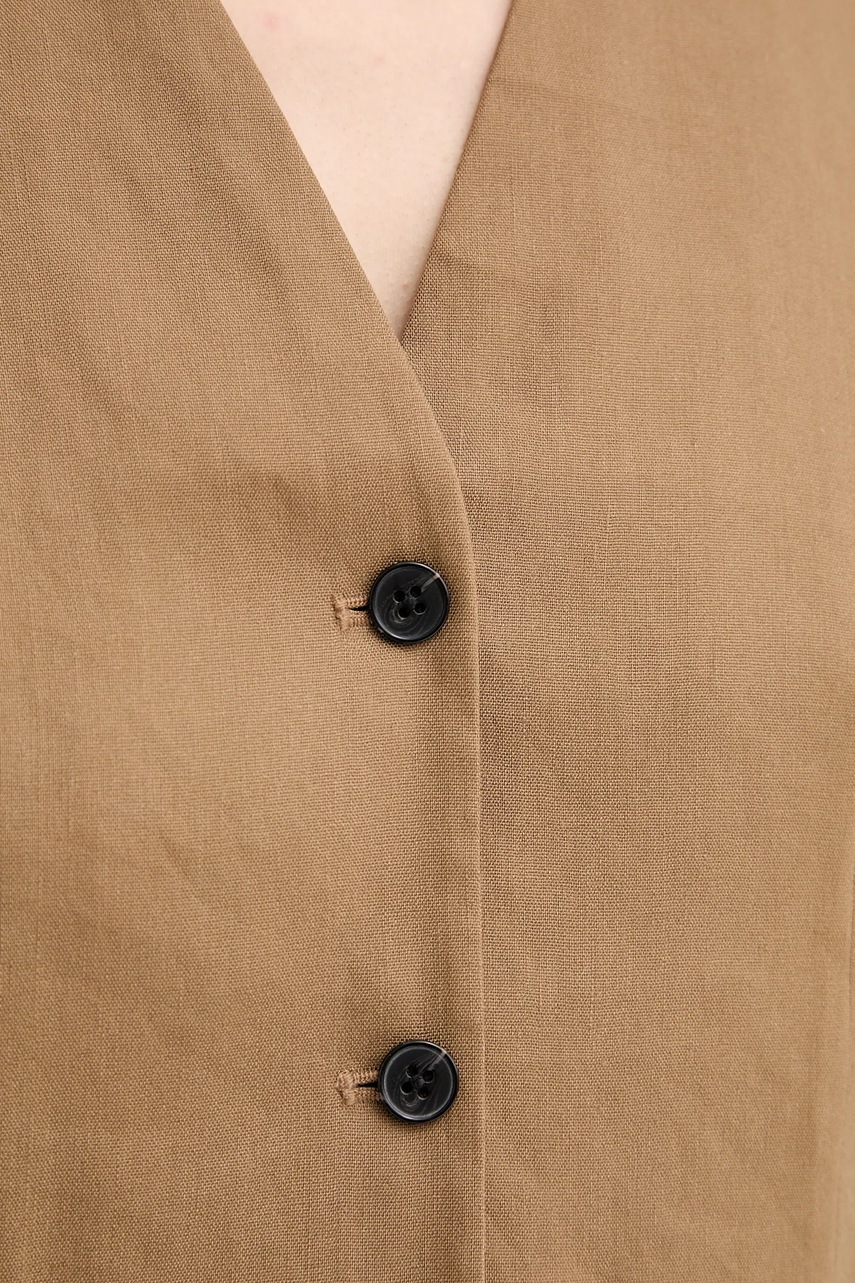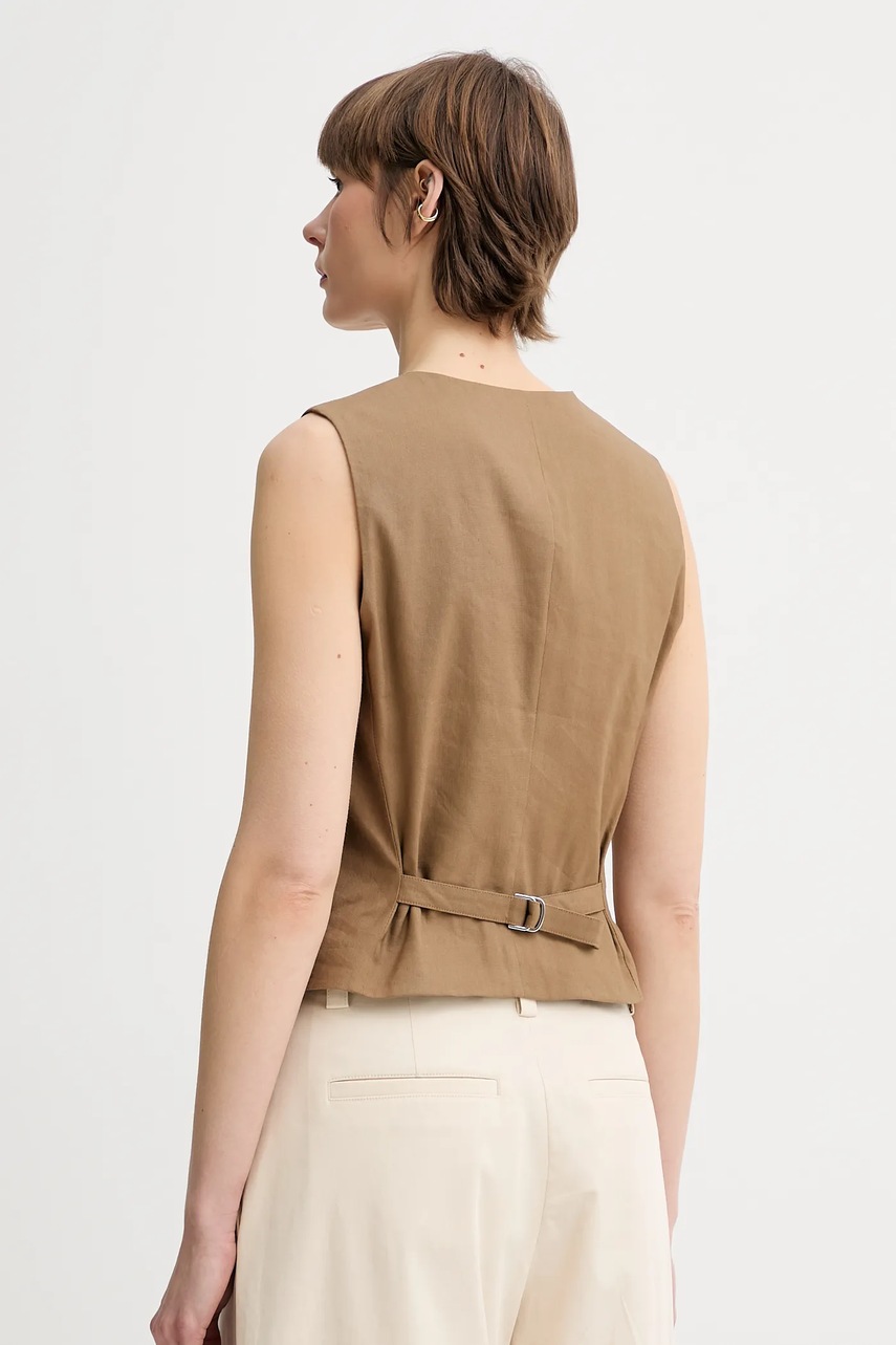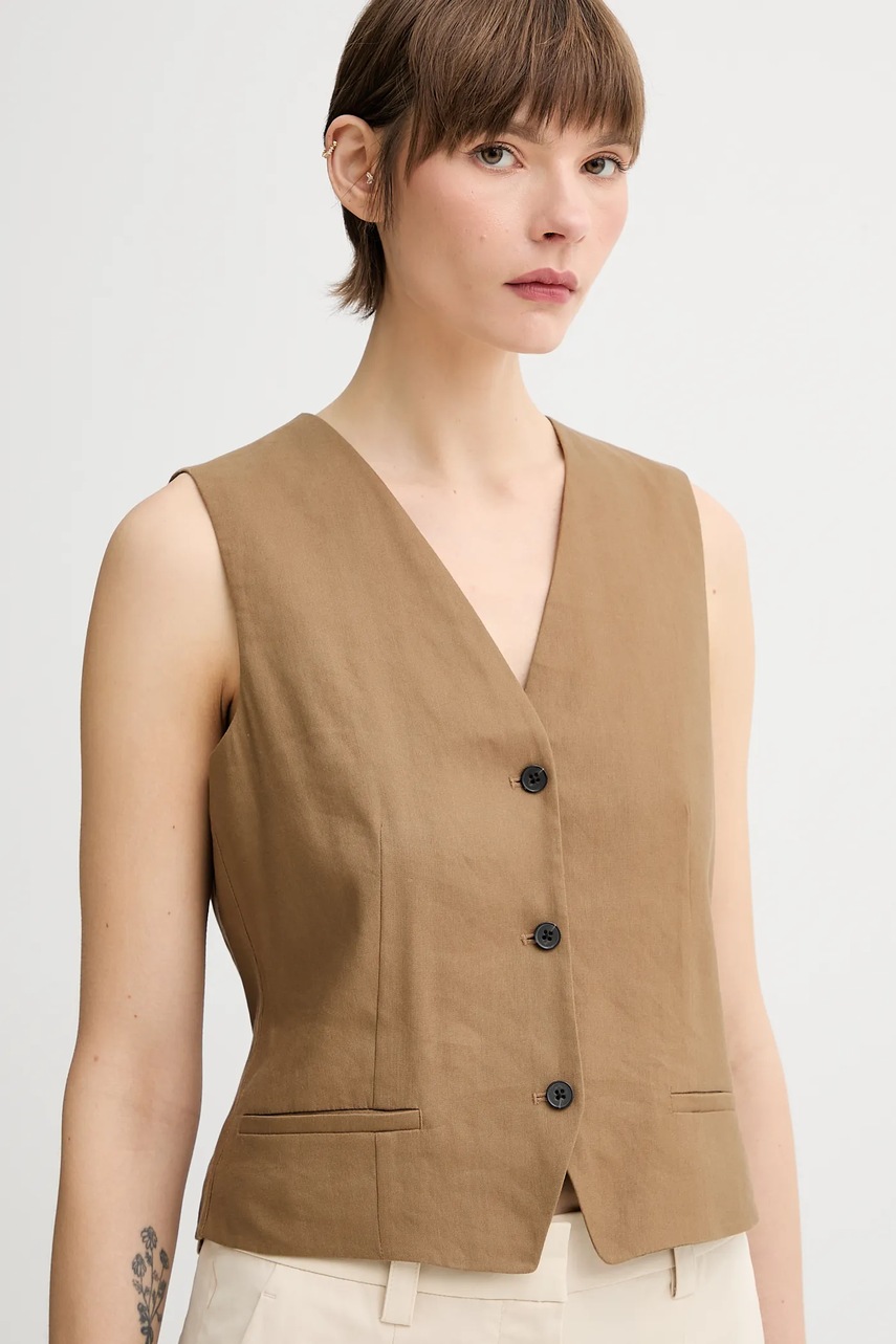 Marc O'Polo kamizelka lniana kolor zielony jednorzędowa 504095281007