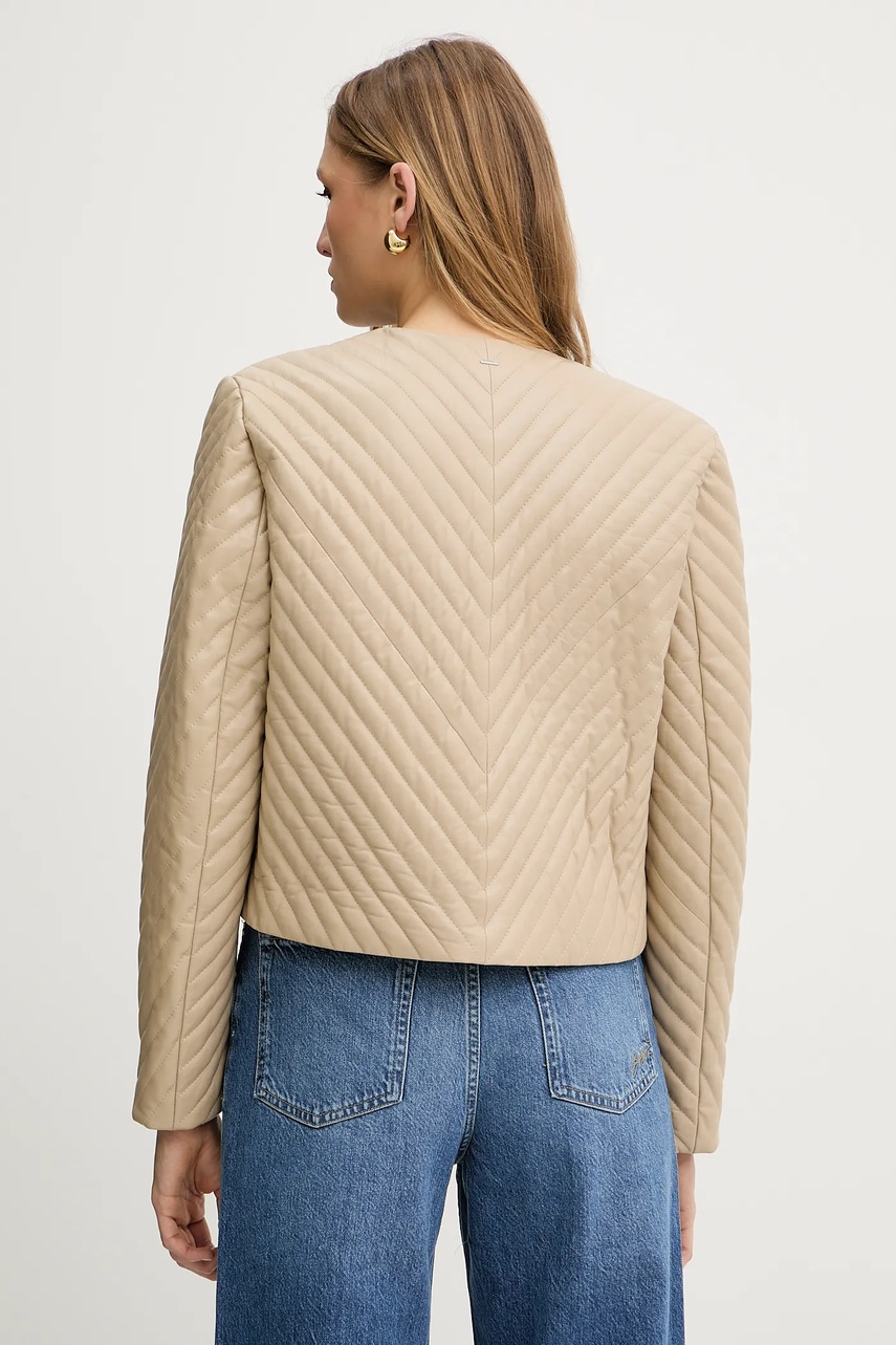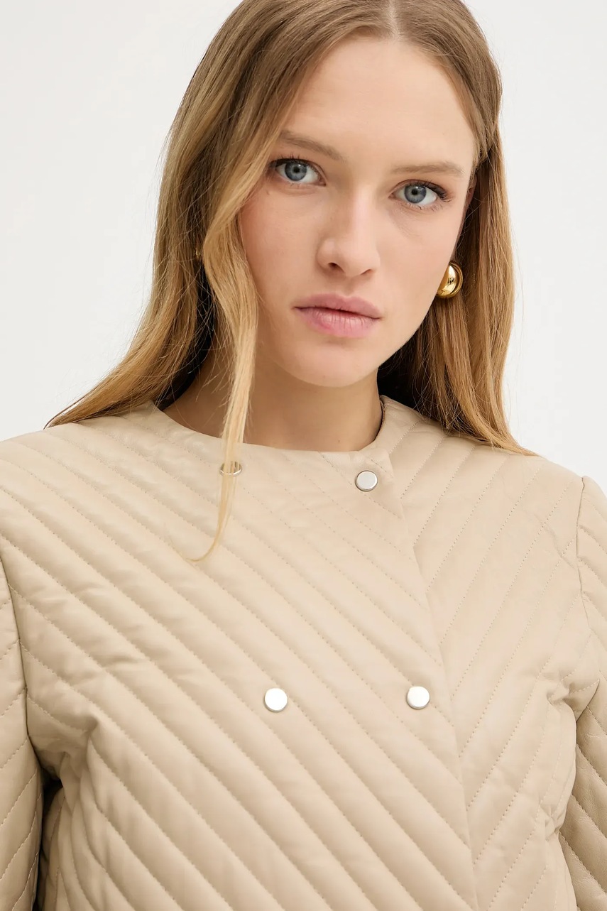 BOSS kurtka skórzana kolor beżowy przejściowa 50541919