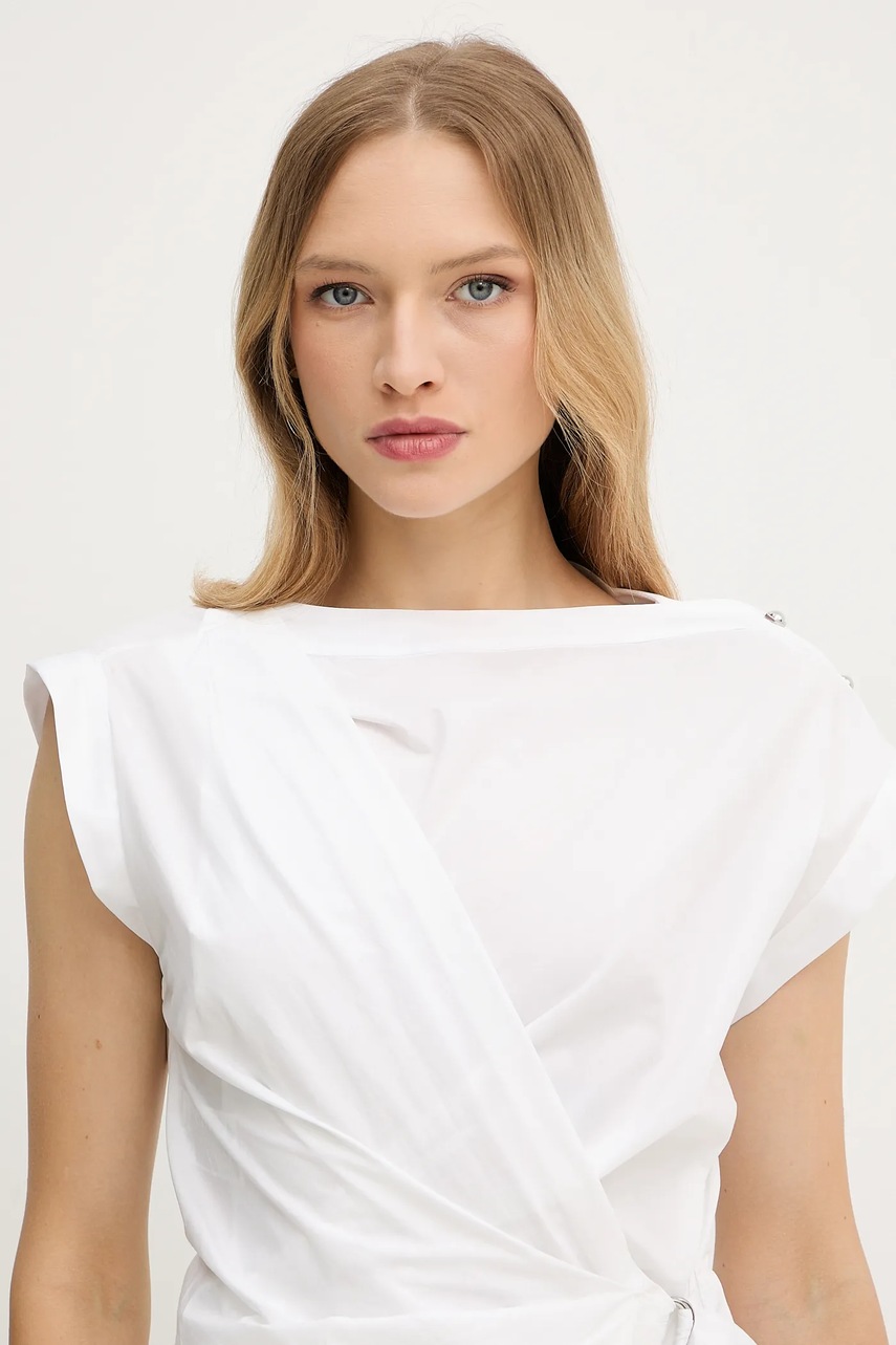 Pinko sukienka bawełniana kolor biały mini rozkloszowana 105215 A2LD
