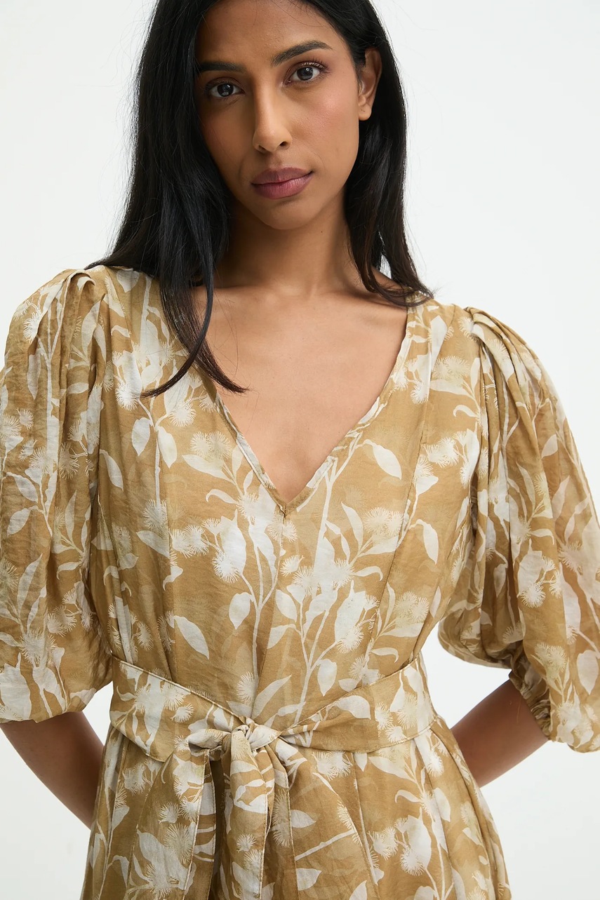 Answear.LAB sukienka z jedwabiem kolor beżowy mini rozkloszowana