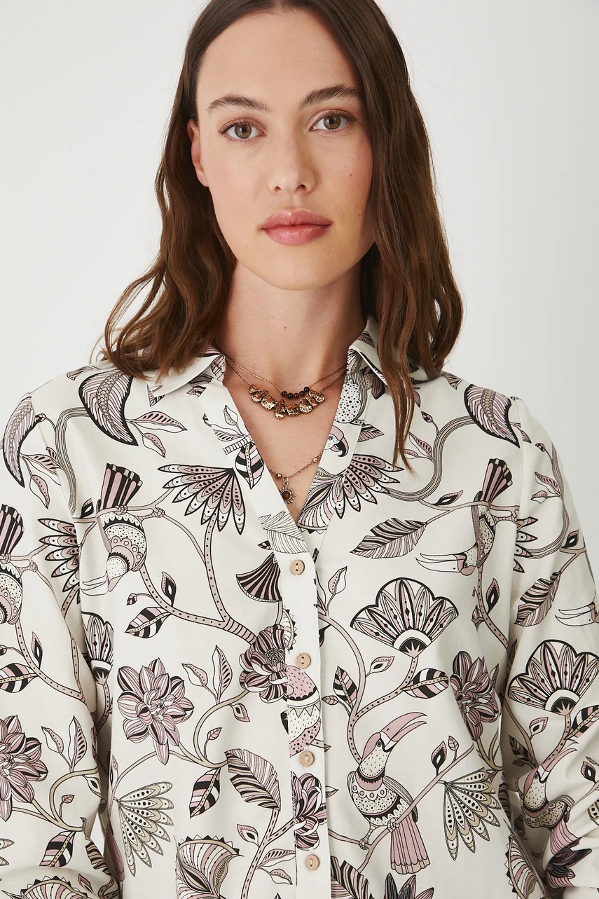 Medicine koszula damska kolor beżowy regular z kołnierzykiem klasycznym
