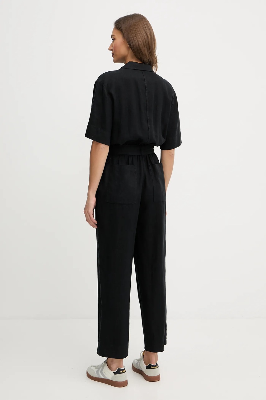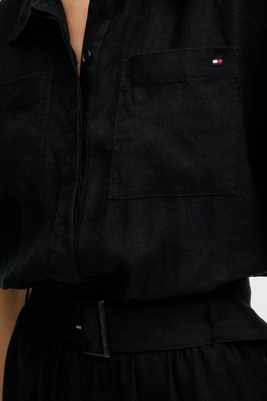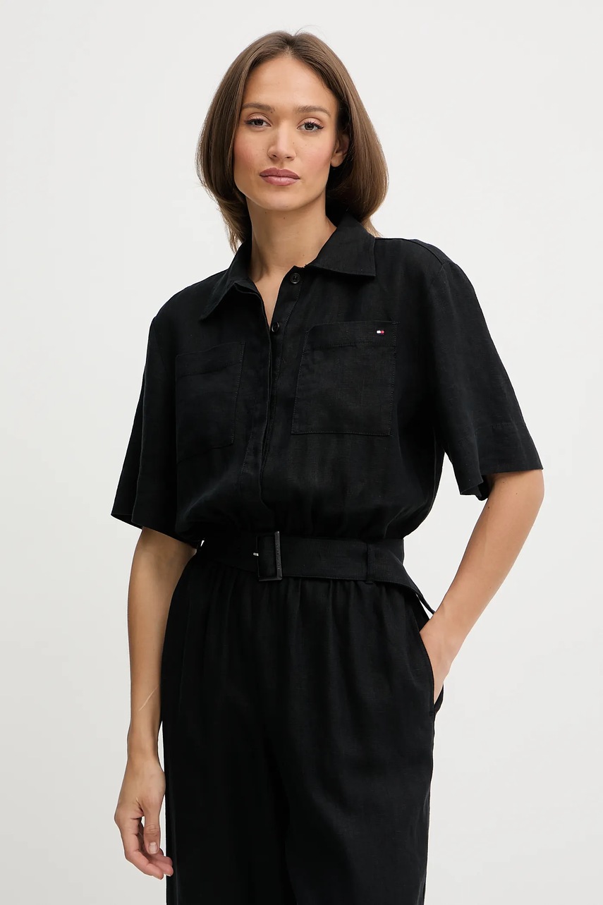 Tommy Hilfiger kombinezon lniany kolor czarny z kołnierzykiemm WW0WW47168