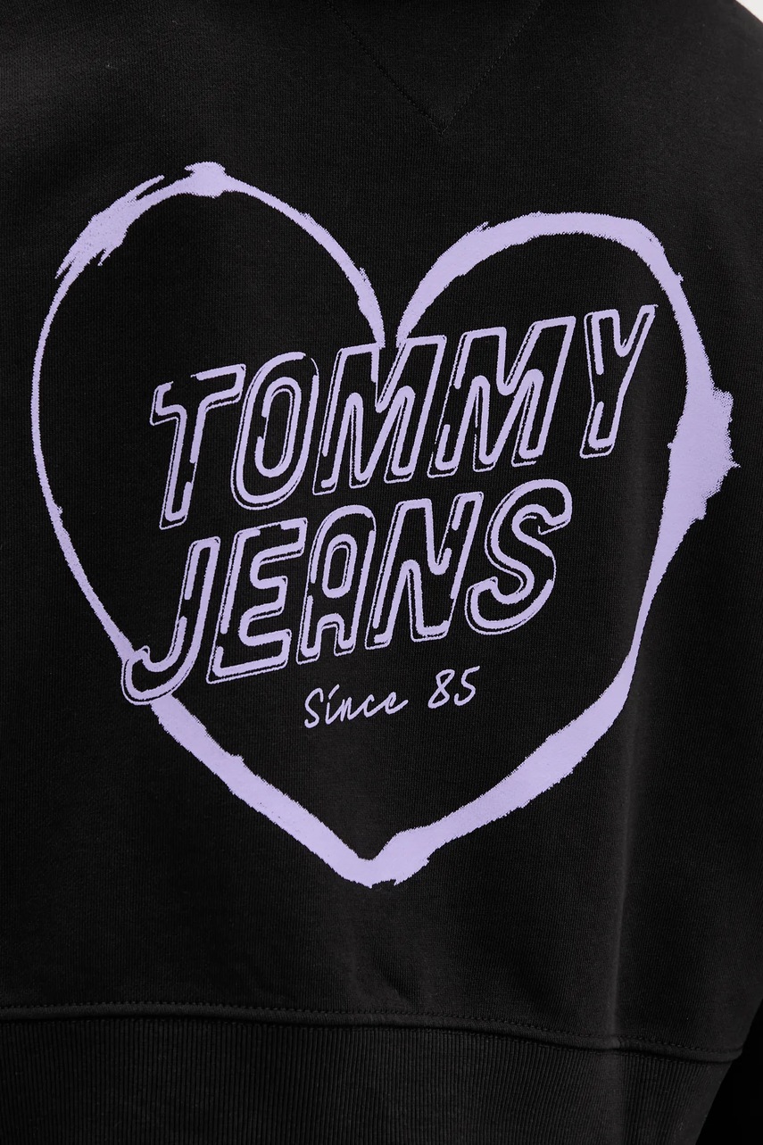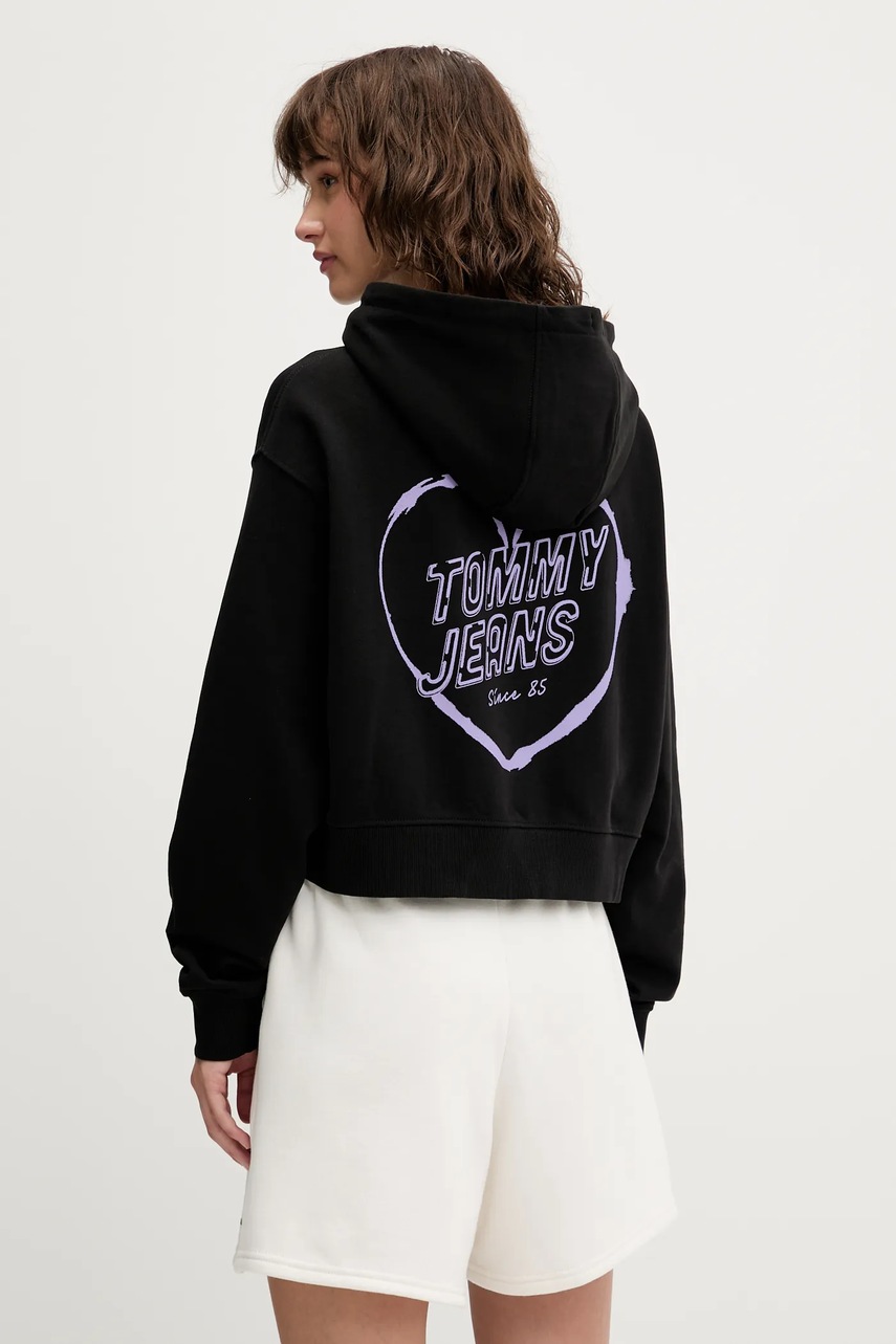 Tommy Jeans bluza bawełniana damska kolor czarny z kapturem z nadrukiem DW0DW21408