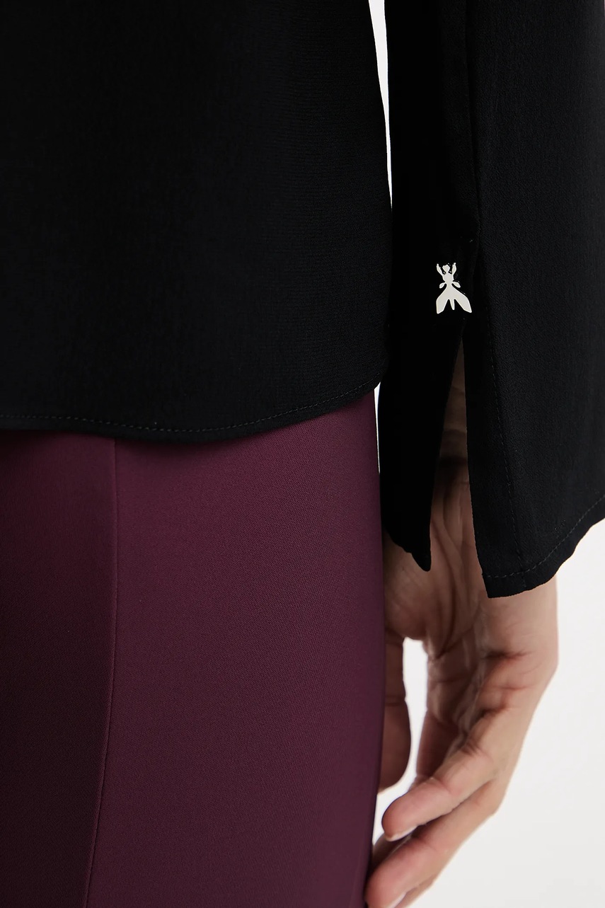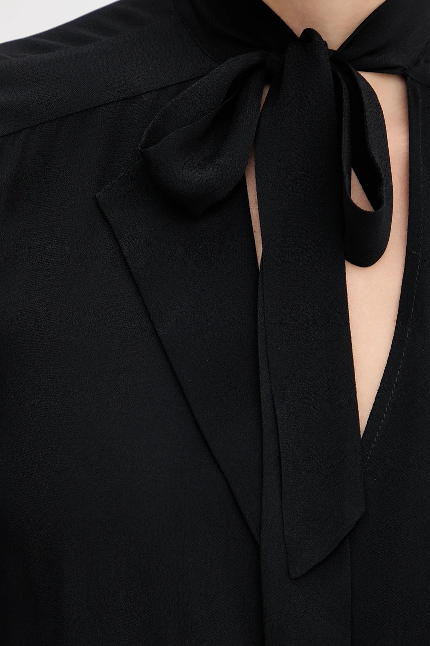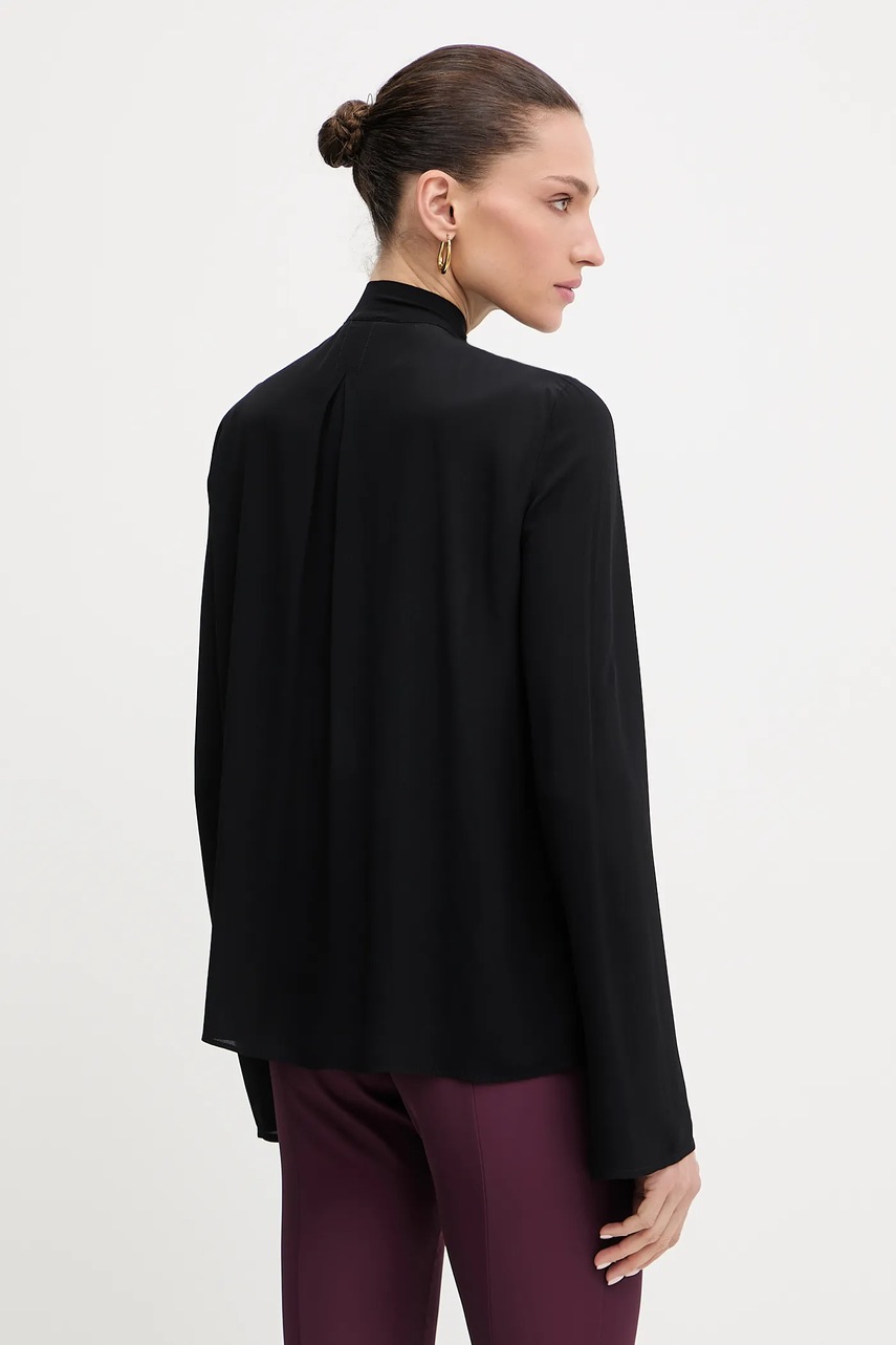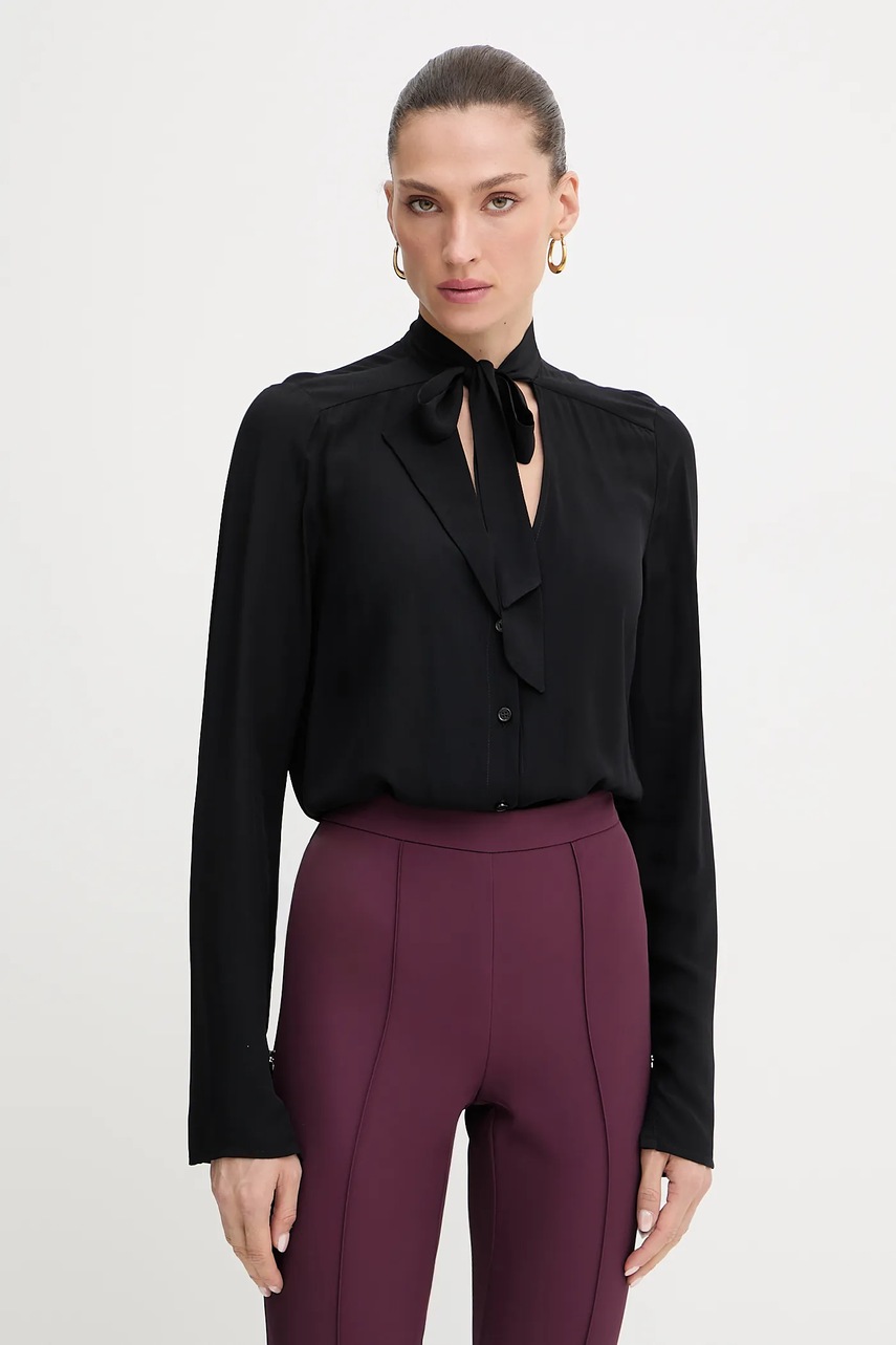 Patrizia Pepe koszula damska kolor czarny regular z wiązanym dekoltem 8C0785 A8I1