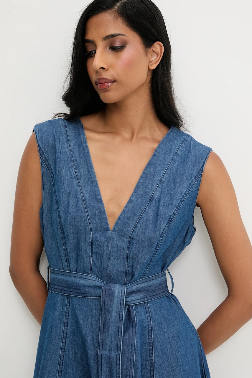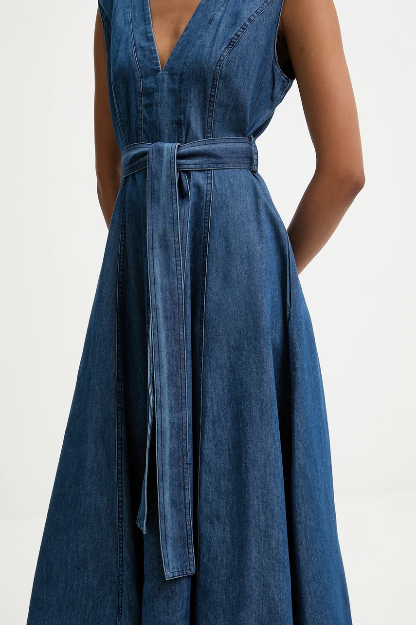 Answear.LAB sukienka jeansowa kolor niebieski midi rozkloszowana