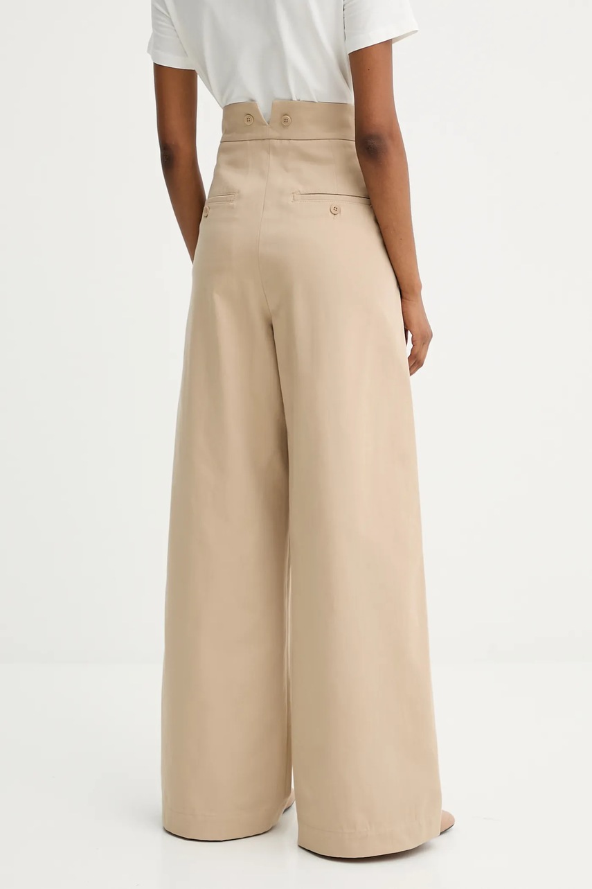 Weekend Max Mara spodnie bawełniane ALFEO damskie kolor beżowy szerokie high waist 2525136101600