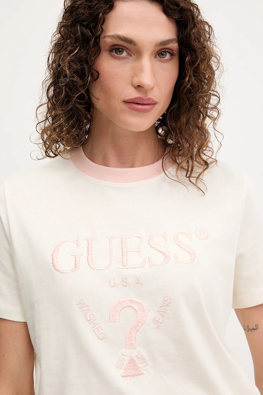 Guess t-shirt bawełniany FILANTA damski kolor beżowy V5GI18 I3Z14