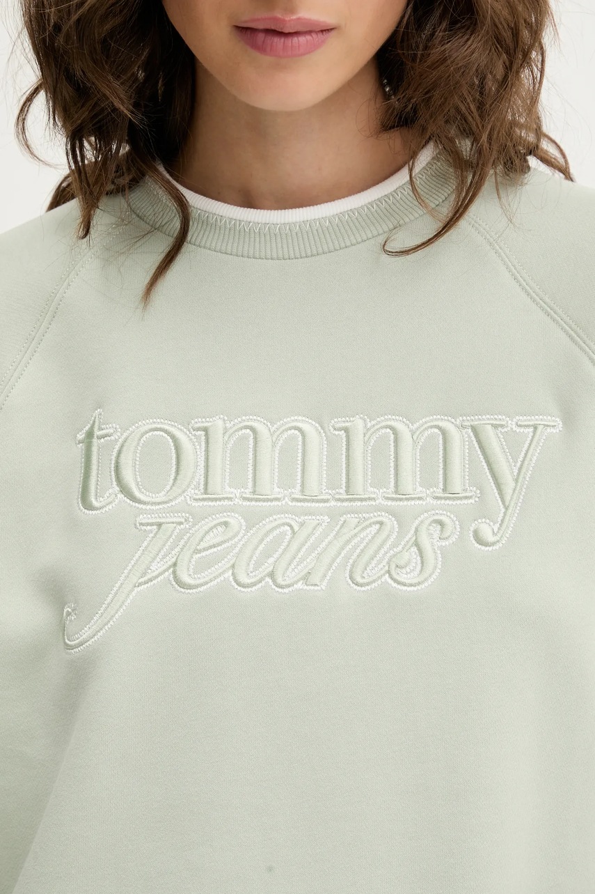 Tommy Jeans bluza damska kolor zielony z aplikacją DW0DW21196