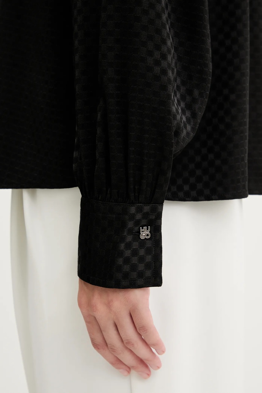 HUGO koszula damska kolor czarny regular z kołnierzykiem klasycznym 50543359