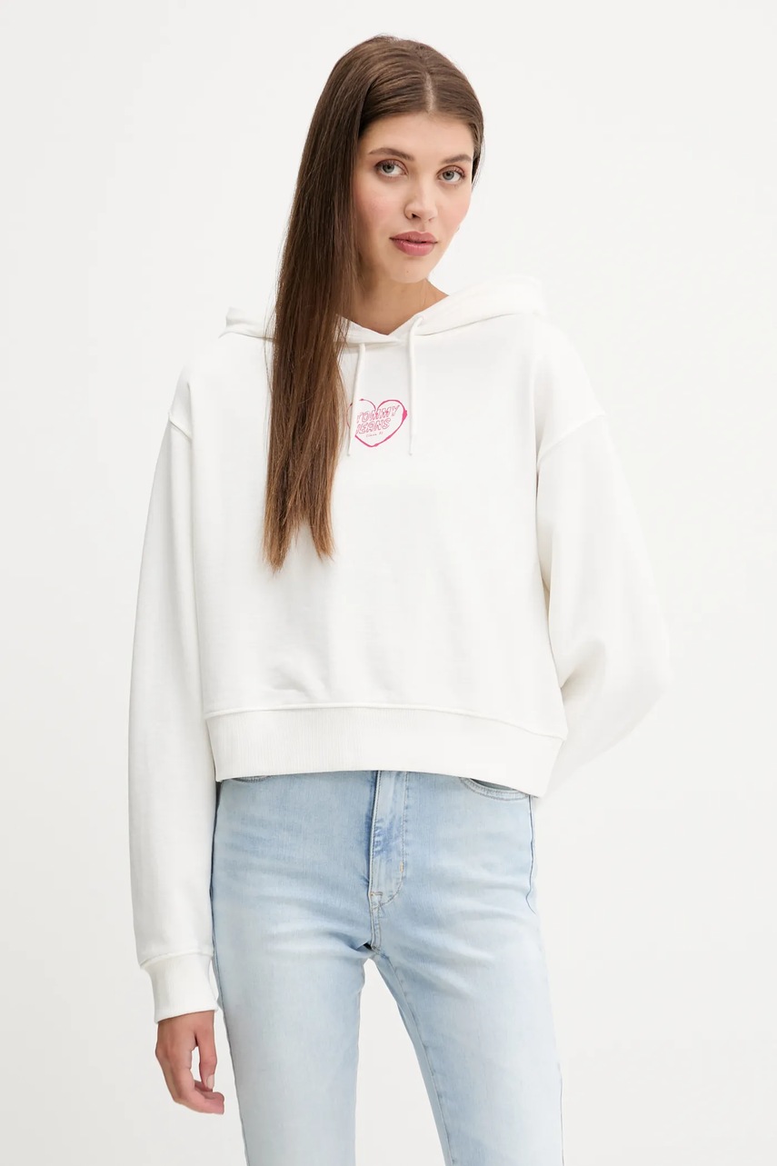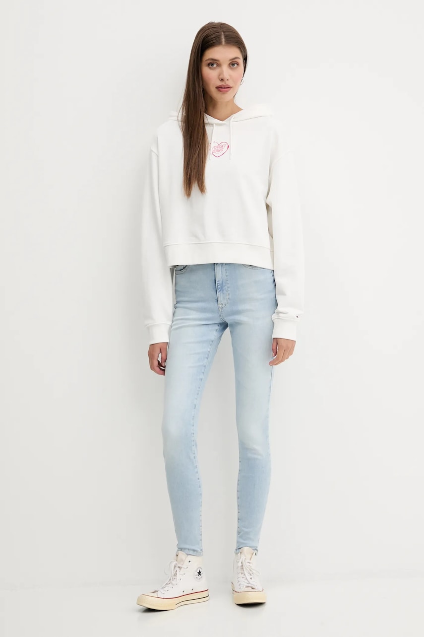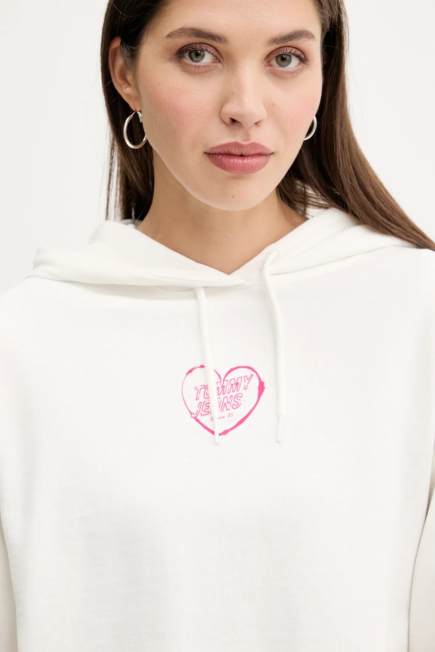 Tommy Jeans bluza bawełniana damska kolor biały z kapturem z nadrukiem DW0DW21408