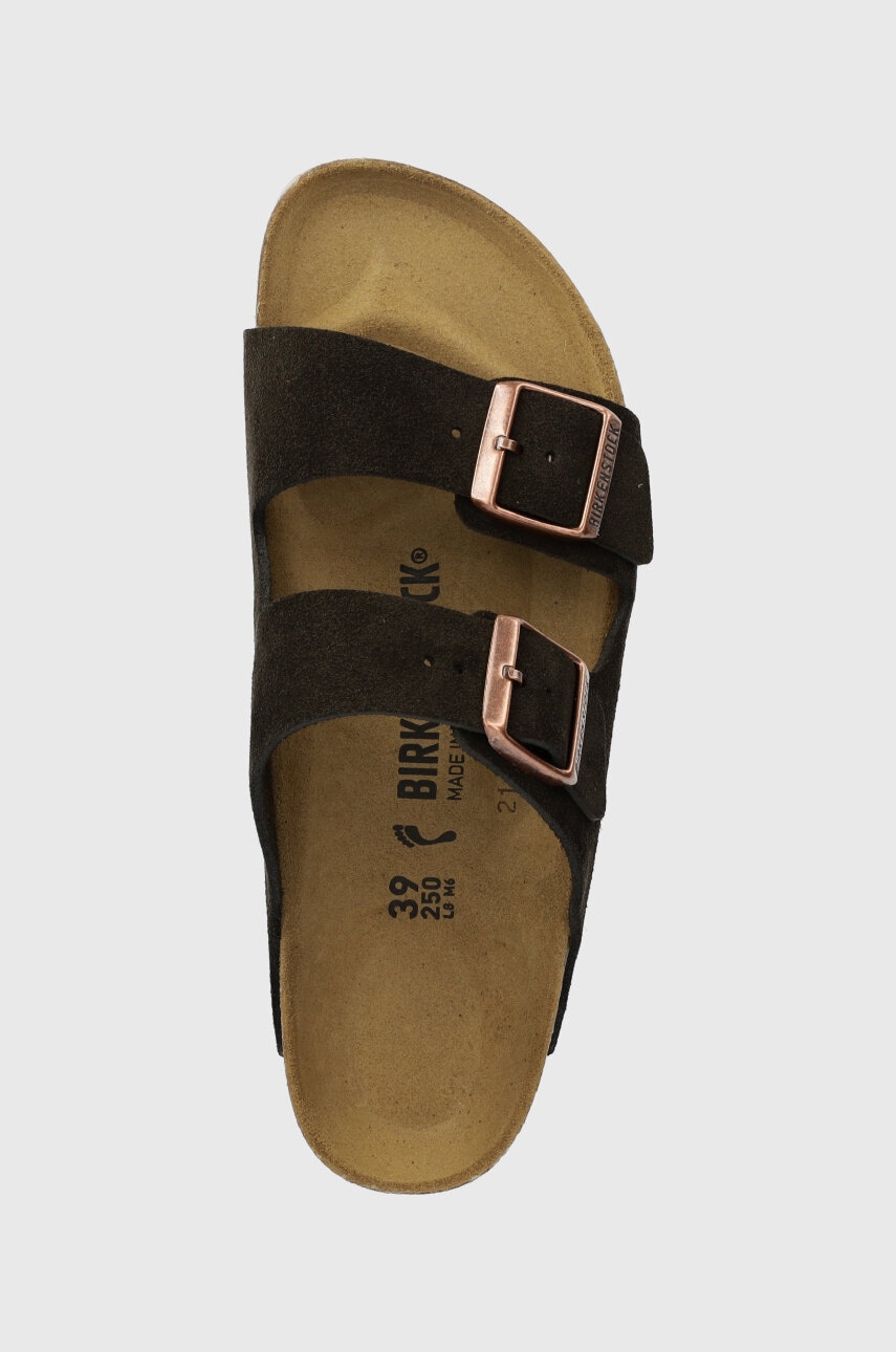 Birkenstock klapki zamszowe Arizona damskie kolor brązowy 1027083