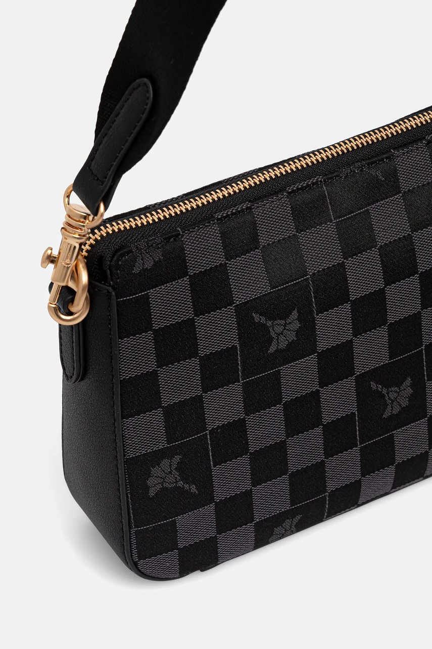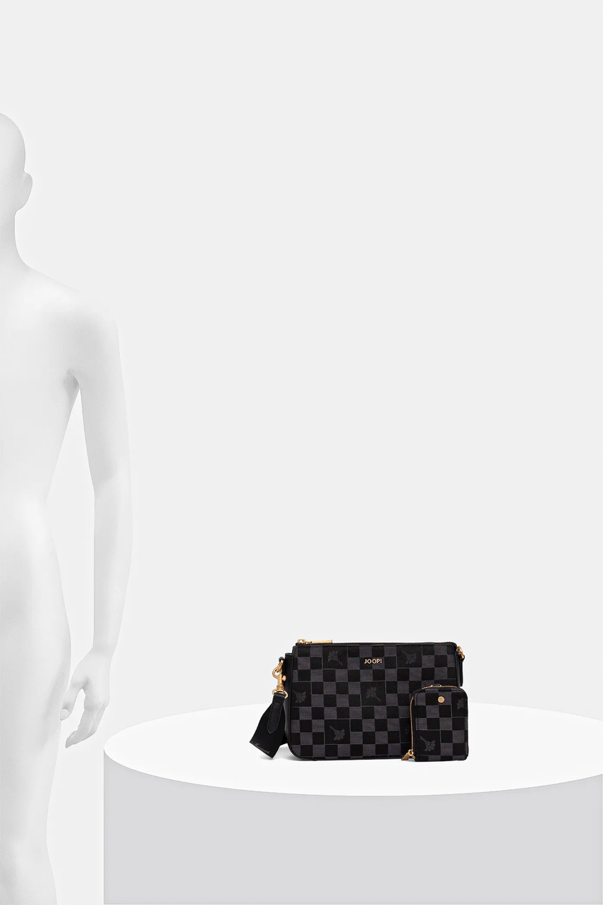 Czym wyróżnia się tekstylna torebka crossbody Joop! w szaro-czarnej kracie?Kompaktowy format (24,5 x 16,5 x 6 cm) gwarantuje wygodne przechowywanie niezbędnych rzeczy bez zbędnego obciążeniaMateriał tekstylny z imitacją skóry licowej o matowym wykończeniu zapewnia trwałość i stylowy wygląd, zachowując lekkość oraz łatwość czyszczeniaNowoczesny wzór w kratę z aplikacją podkreśla wyrazisty charakter torebki i przyciąga wzrok, wpisując się w aktualne trendy modyOdpinany i regulowany pasek o długości do 104 cm umożliwia indywidualne dopasowanie do sylwetki oraz wygodne noszenie na ramieniu lub przez ciałoPraktyczne zapięcie na zamek błyskawiczny skutecznie zabezpiecza zawartość podczas aktywnego użytkowaniaJedna komora główna z podszewką pozwala na czytelne uporządkowanie przedmiotów i szybki dostęp do najważniejszych rzeczyMała saszetka w zestawie idealnie sprawdzi się jako dodatkowe miejsce na drobiazgi