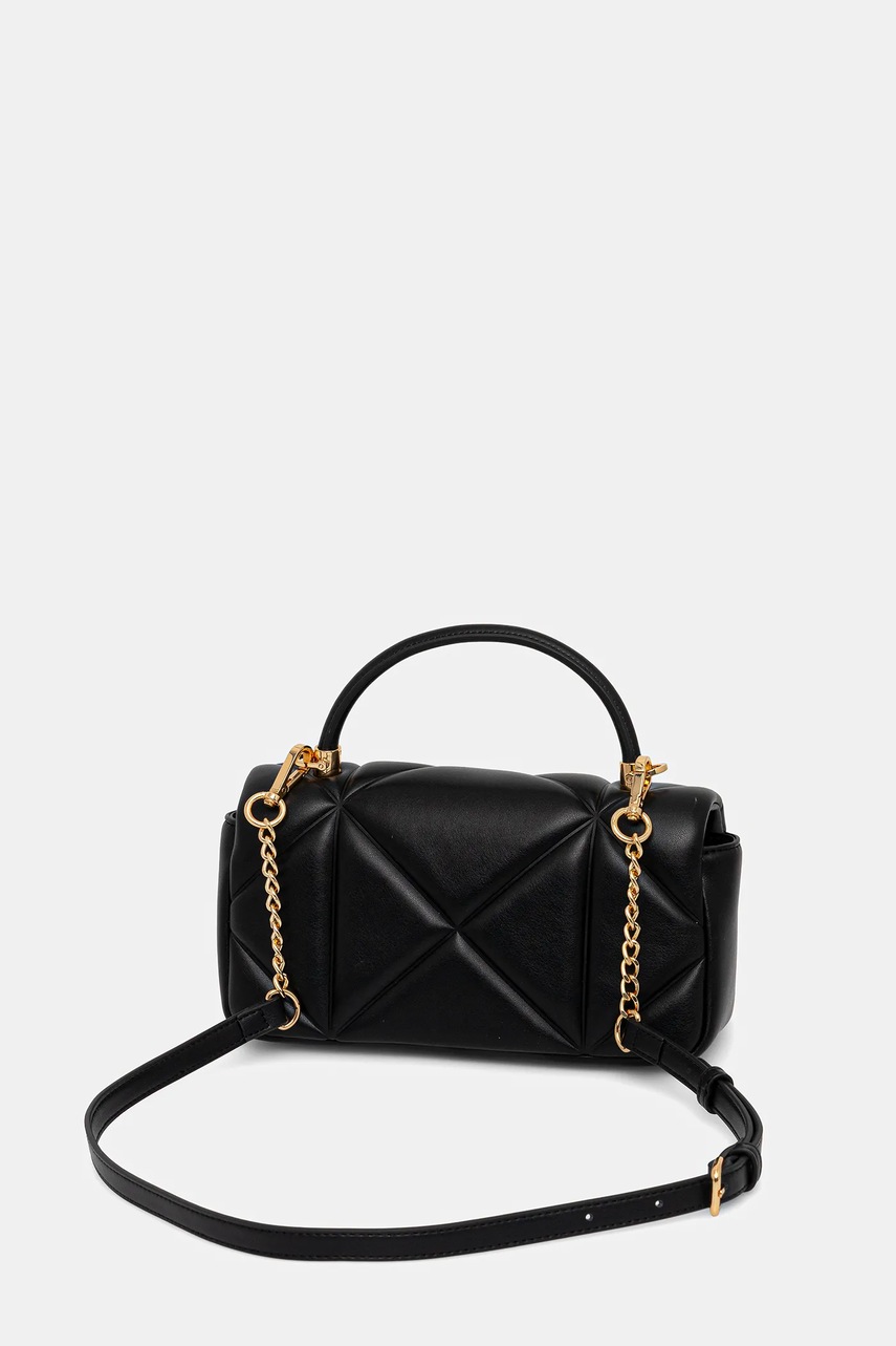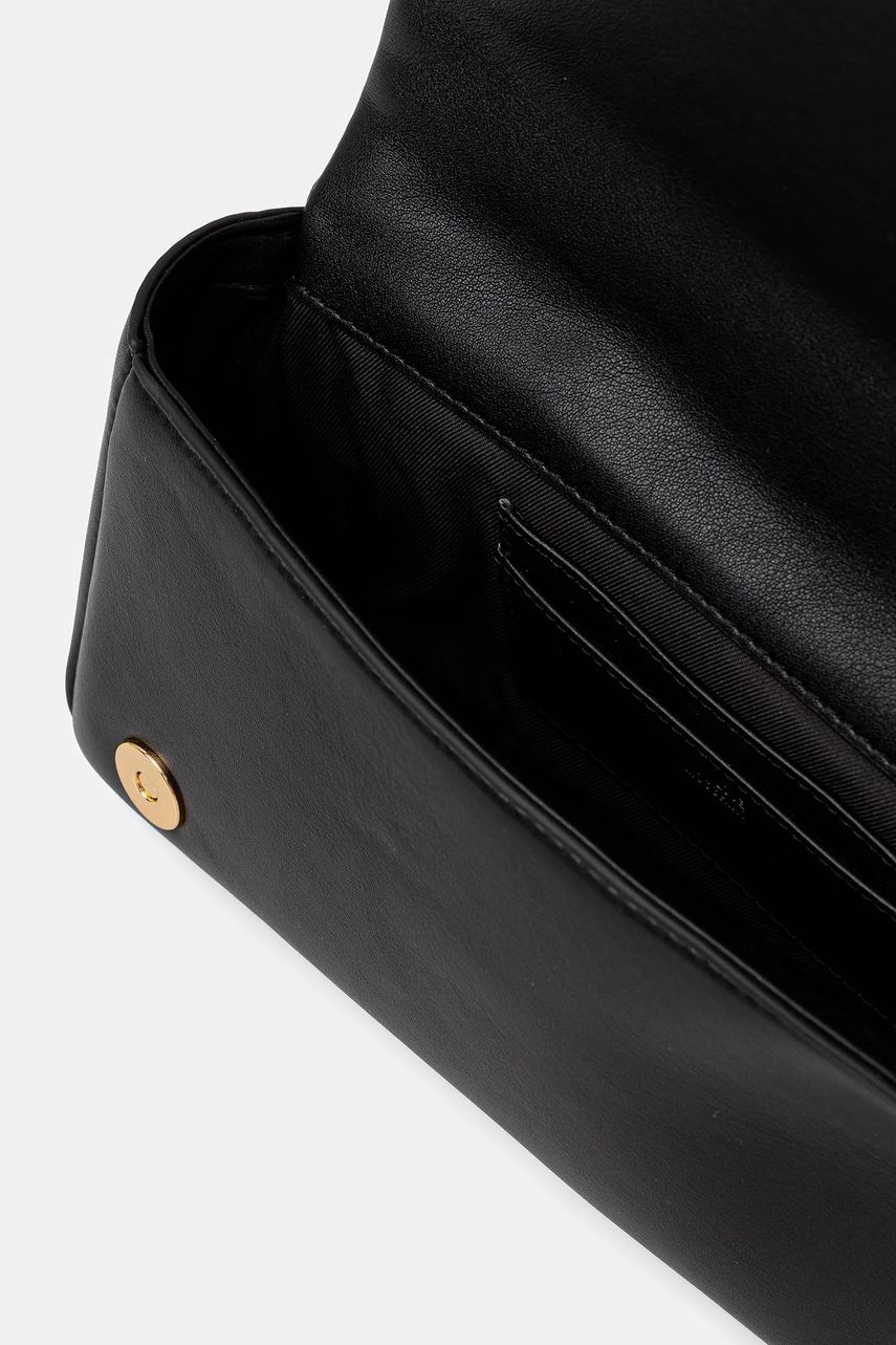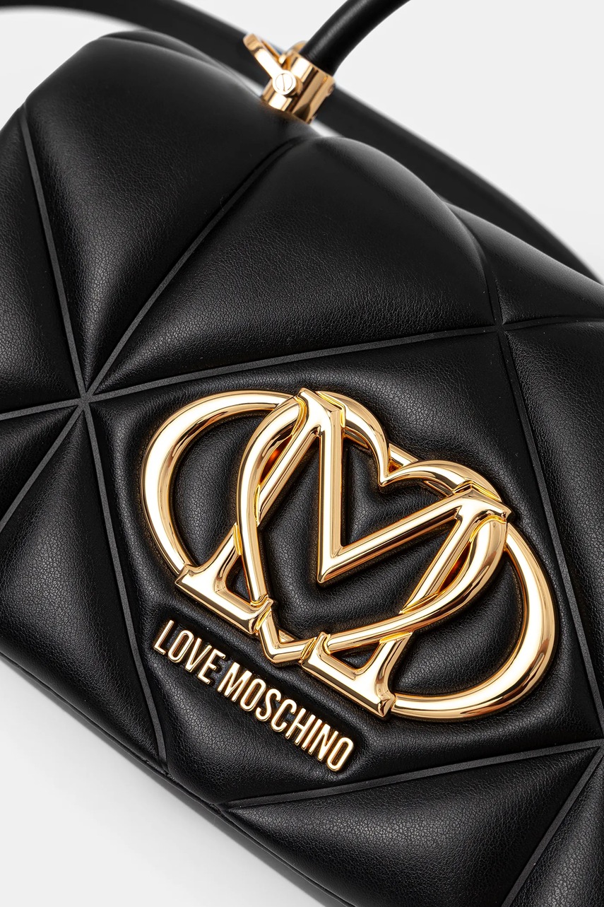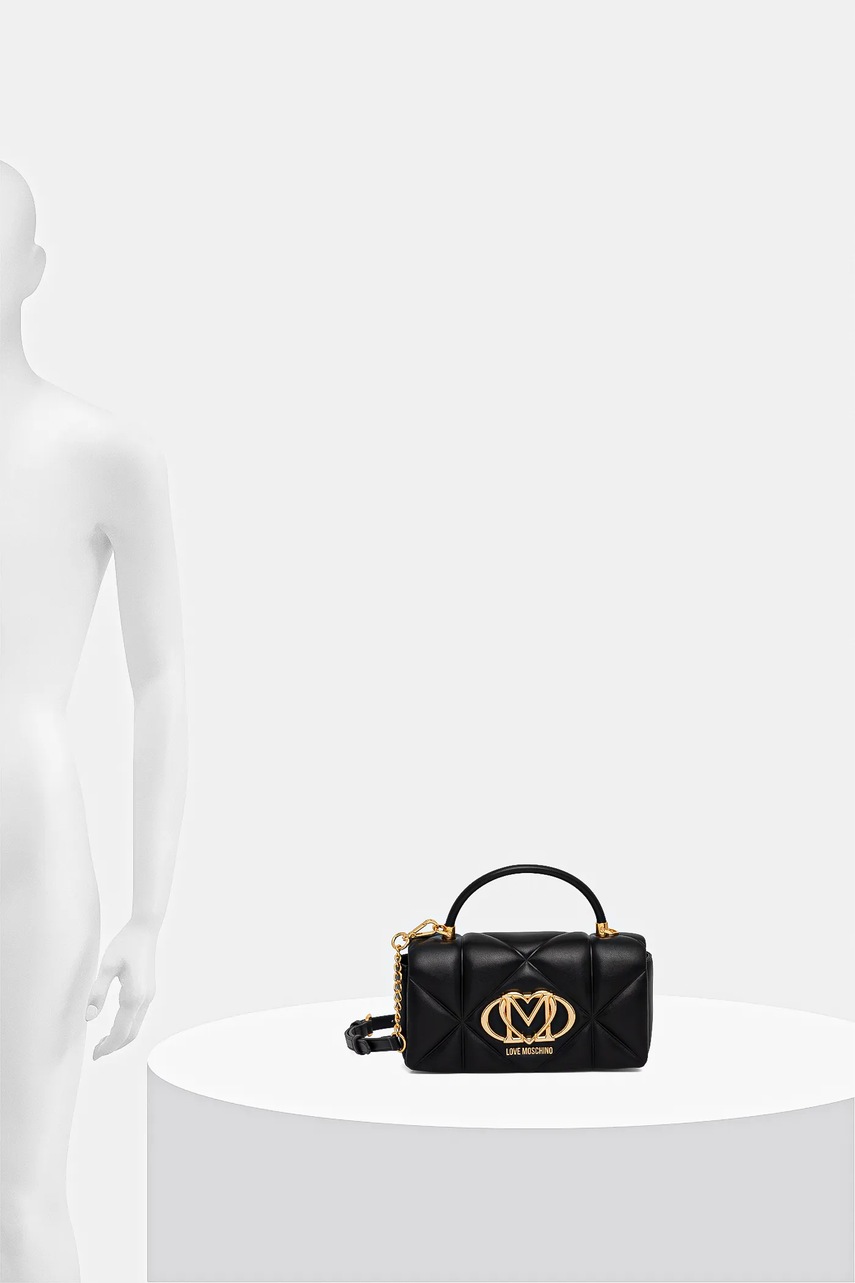 Czym wyróżnia się torebka z imitacji skóry licowej Love Moschino?Matowe, pikowane wykończenie z aplikacją pozwala wyróżnić się unikalnym stylem i nowoczesną teksturą, która przykuwa wzrok i podkreśla indywidualny charakter stylizacjiPraktyczne zamknięcie na klips magnetyczny umożliwia szybki i łatwy dostęp do zawartości, jednocześnie dbając o bezpieczeństwo przechowywanych drobiazgówRegulowany oraz odpinany pasek pozwala dopasować długość do własnych preferencji - możesz nosić torebkę na ramieniu, przez ramię lub w dłoniKrótki, wąski uchwyt daje dodatkową wygodę noszenia w ręku, gdy chcesz zmienić sposób użytkowania torebkiJednokomorowa konstrukcja umożliwia wygodne uporządkowanie najważniejszych drobiazgów, zachowując przejrzystość i porządekKompaktowe wymiary (szerokość 24,5 cm, wysokość 13 cm, grubość 9,5 cm) sprawiają, że torebka nie mieści formatu A4, dzięki czemu jest lekka i idealna podczas wyjść na miasto czy imprezMaksymalna długość paska 111 cm zapewnia komfort użytkowania niezależnie od sylwetki i preferowanego stylu noszenia