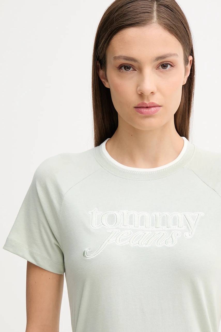 Tommy Jeans t-shirt bawełniany damski kolor zielony DW0DW21388