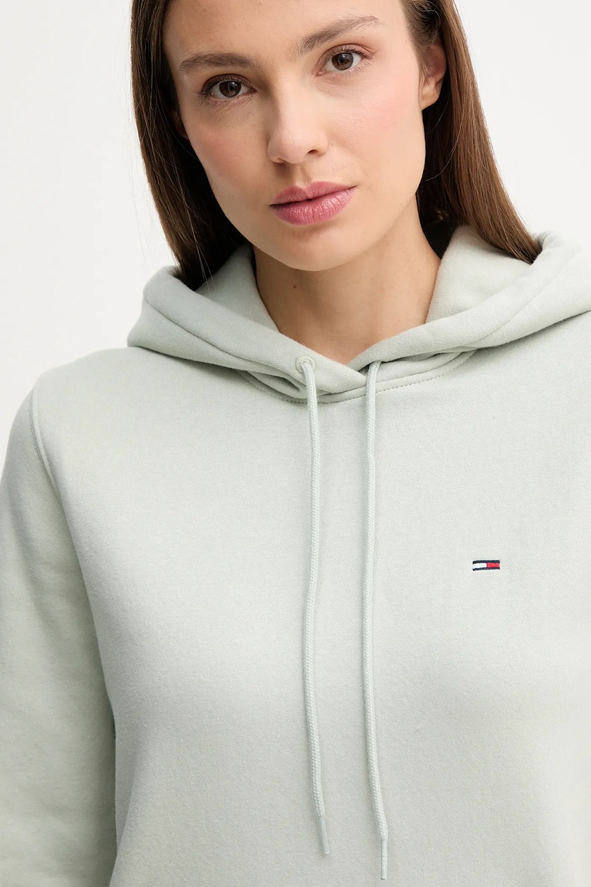Tommy Jeans bluza damska kolor zielony z kapturem gładka DW0DW19958