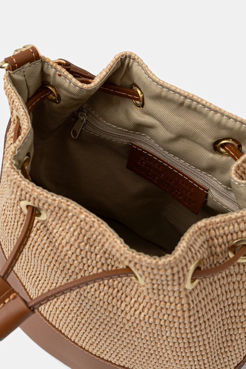 Skład: 50 % Skóra naturalna, 50 % Rafia