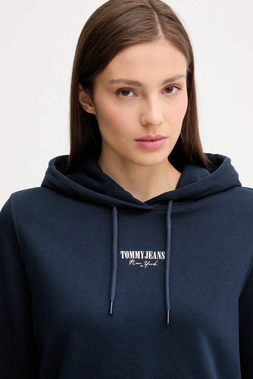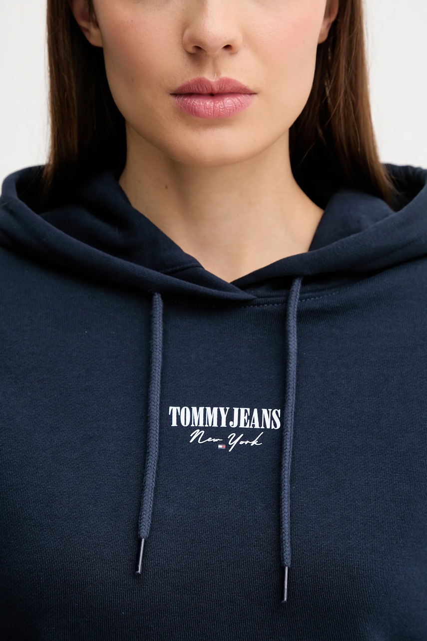 Tommy Jeans bluza bawełniana damska kolor granatowy z kapturem z nadrukiem DW0DW20943