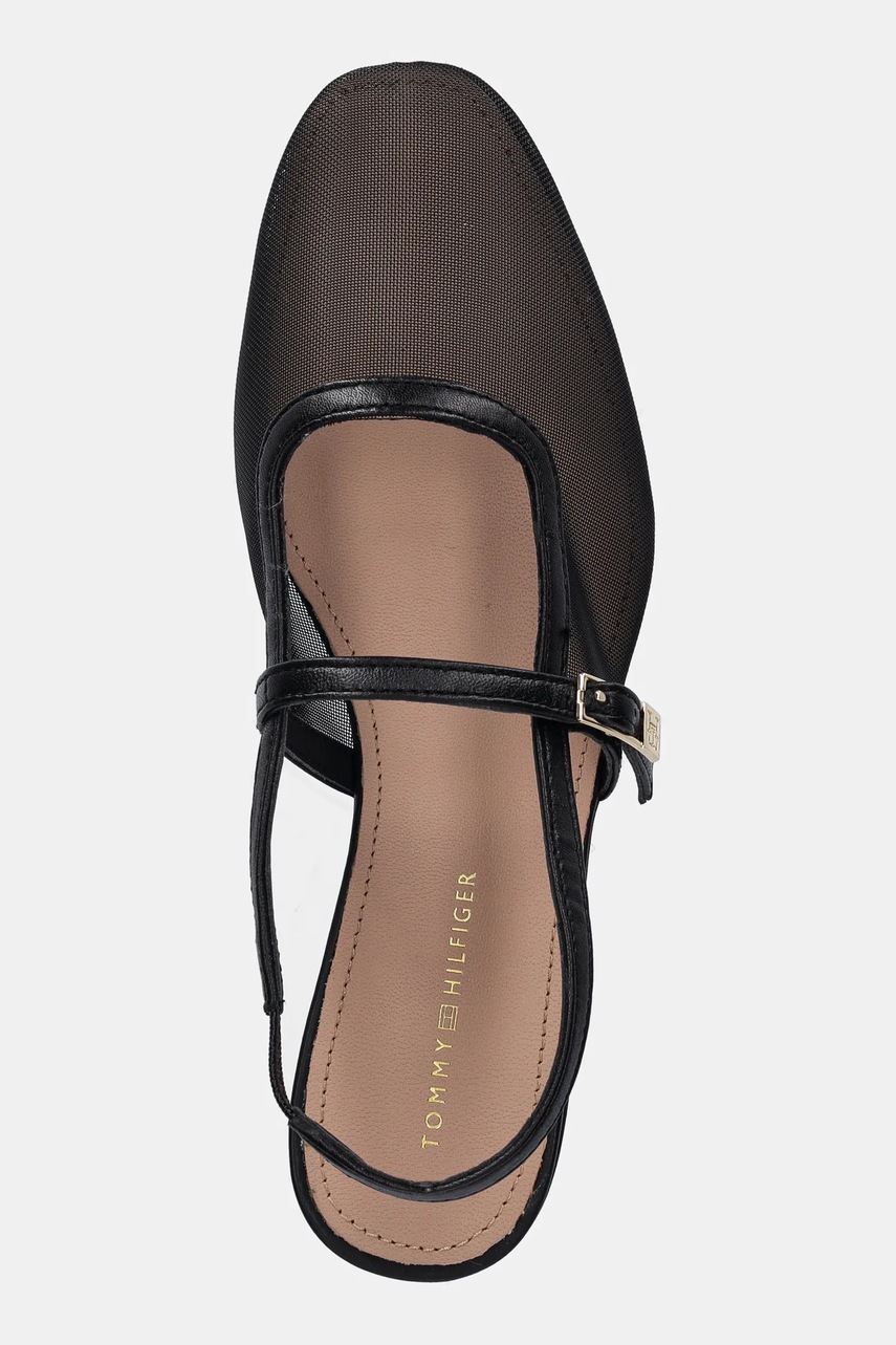 Tommy Hilfiger baleriny MESH ROUND HEEL BALLERINA kolor czarny z odkrytą piętą FW0FW08962