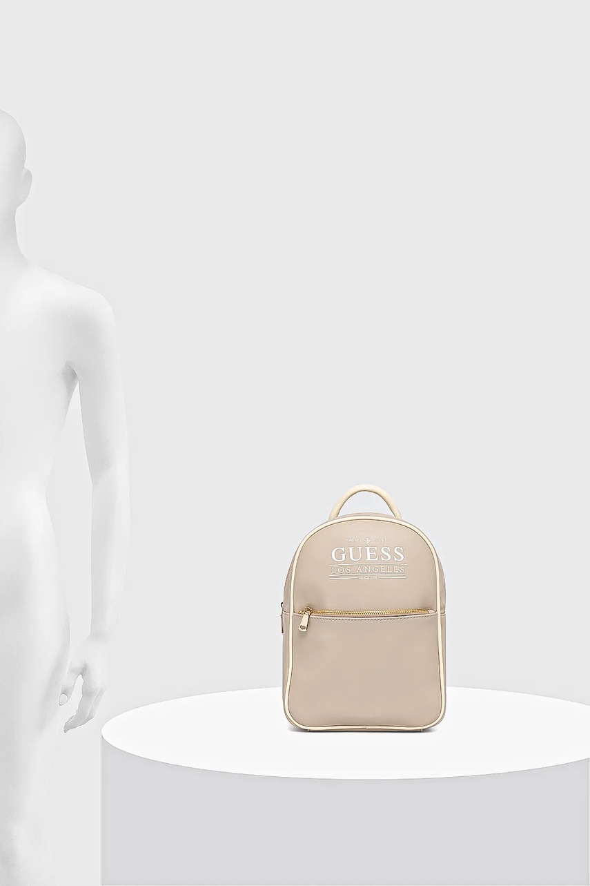 Guess plecak FANCY damski kolor beżowy mały z nadrukiem V5YZ05 WHDX0