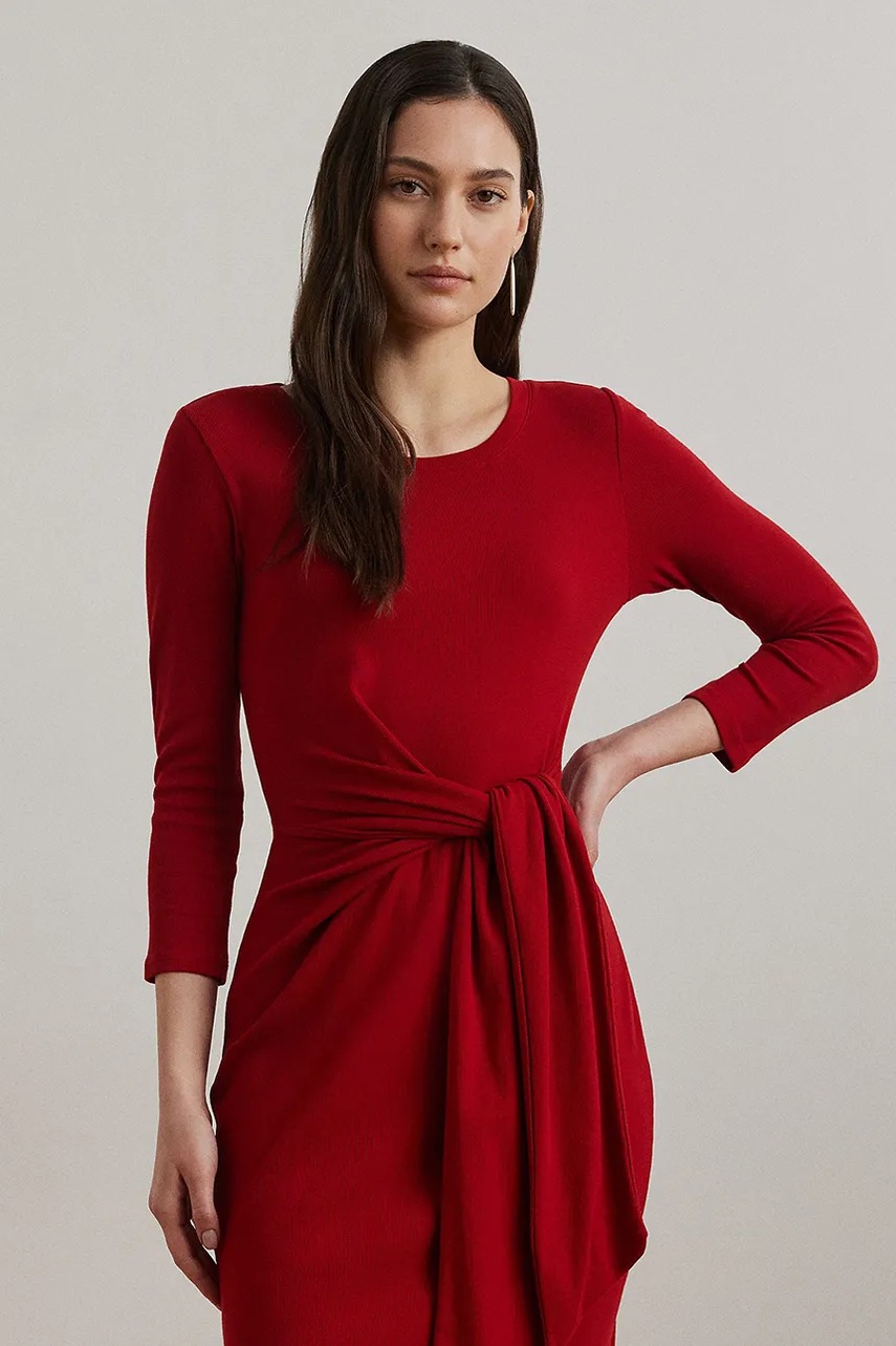Lauren Ralph Lauren sukienka kolor czerwony midi dopasowana 200973598