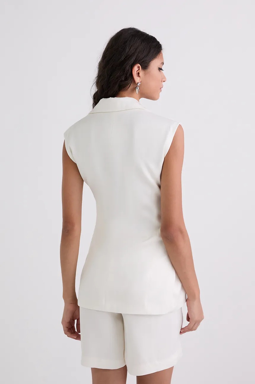 Karl Lagerfeld kamizelka kolor beżowy jednorzędowa A3W14043