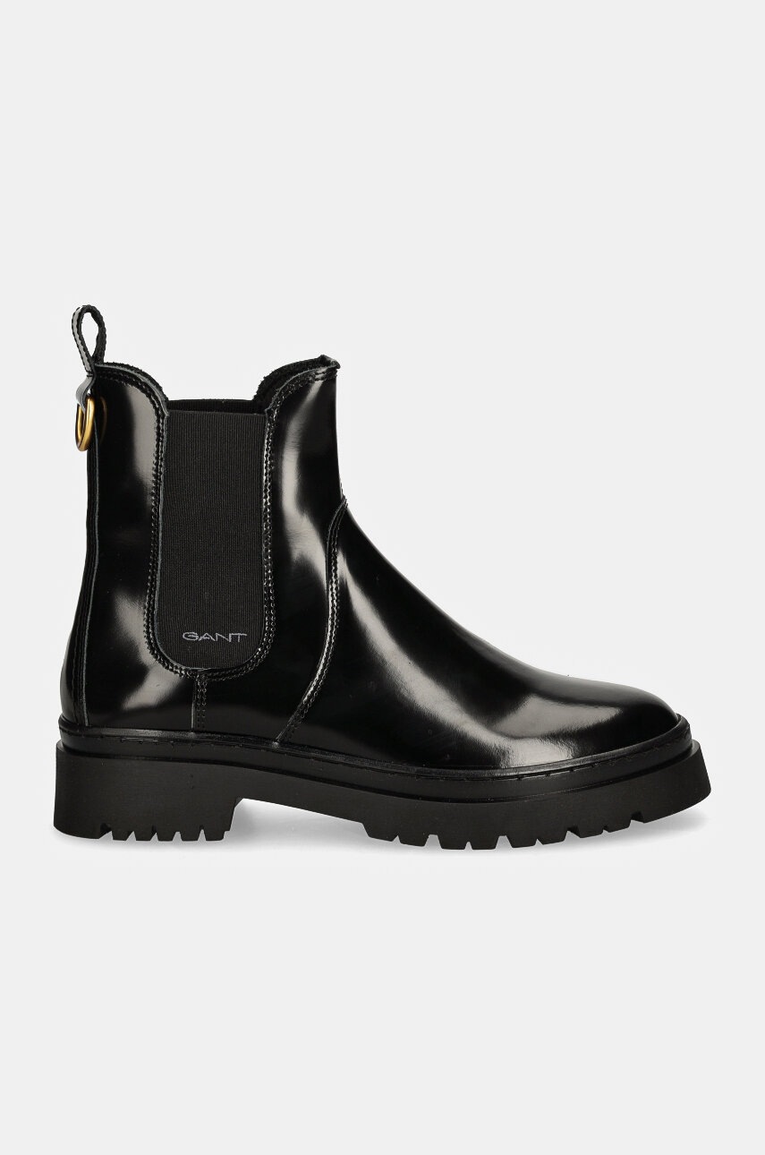 Gant sztyblety skórzane Aligrey damskie kolor czarny na płaskim obcasie 29551762 G00