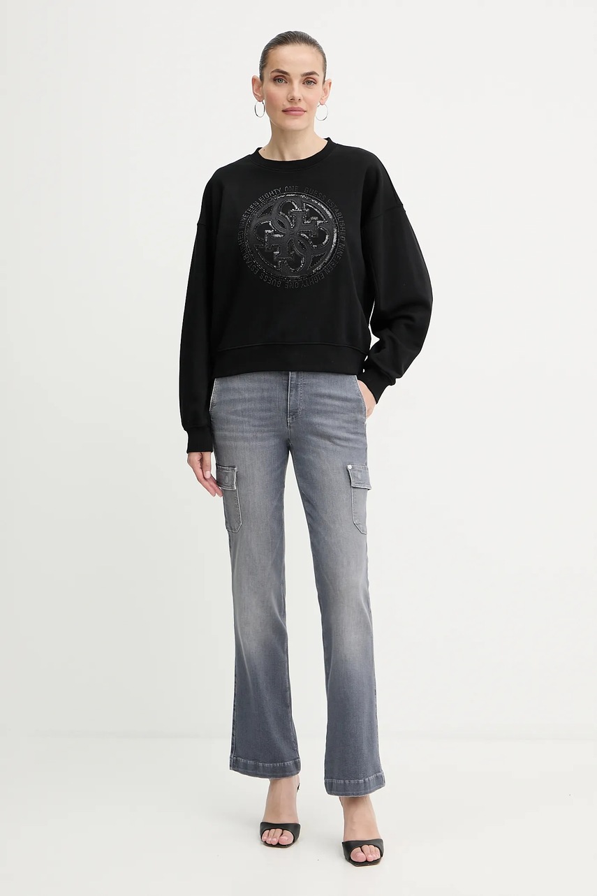 Guess bluza 4G damska kolor czarny z aplikacją W5YQ07 KB681