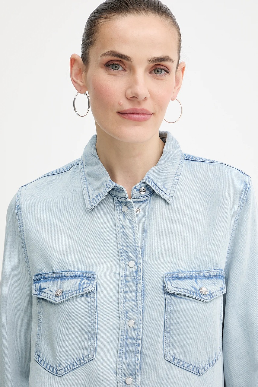 Guess koszula WESTERN damska kolor niebieski regular z kołnierzykiem klasycznym W5YH33 D4N61