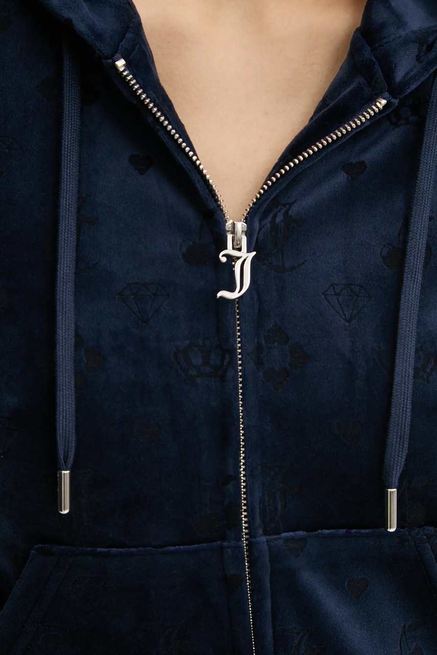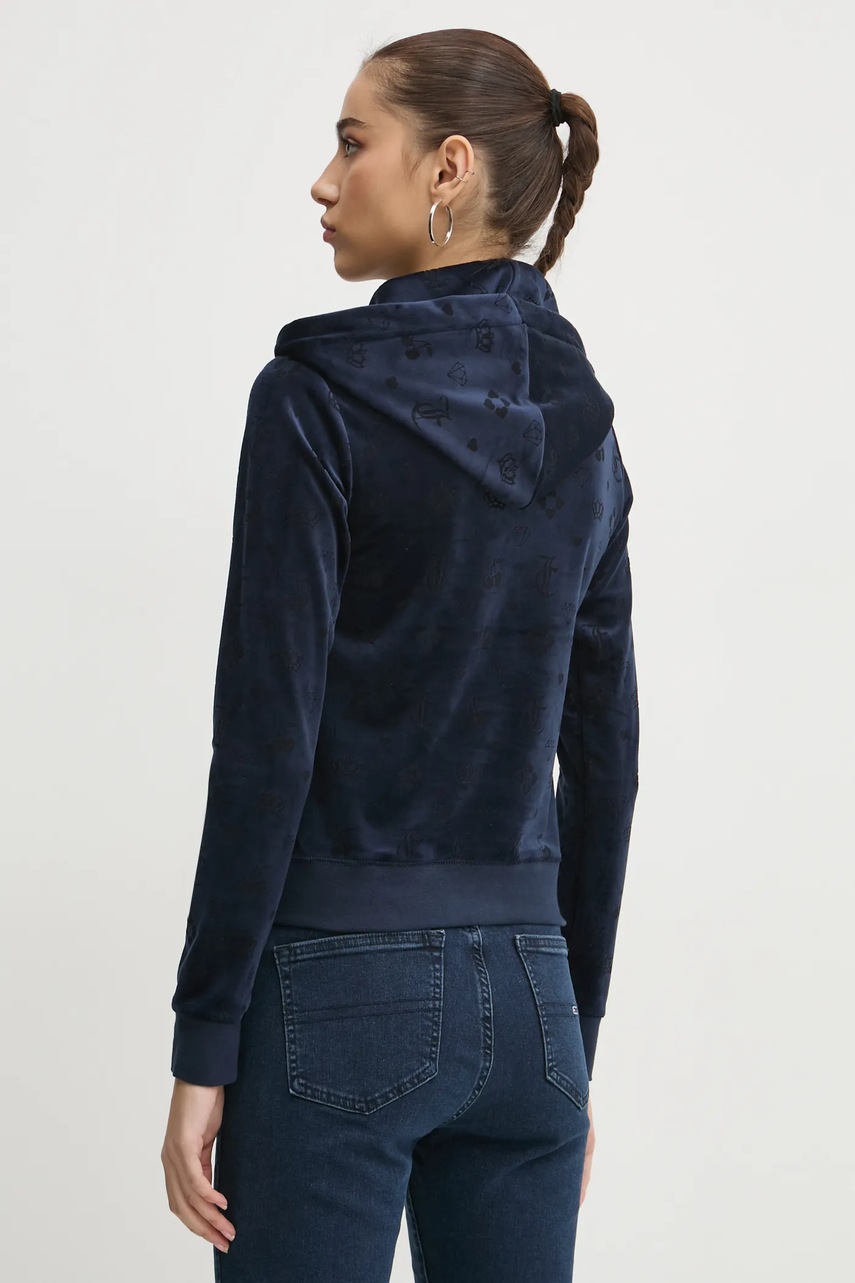Juicy Couture bluza welurowa kolor granatowy z kapturem wzorzysta JCWAS125302