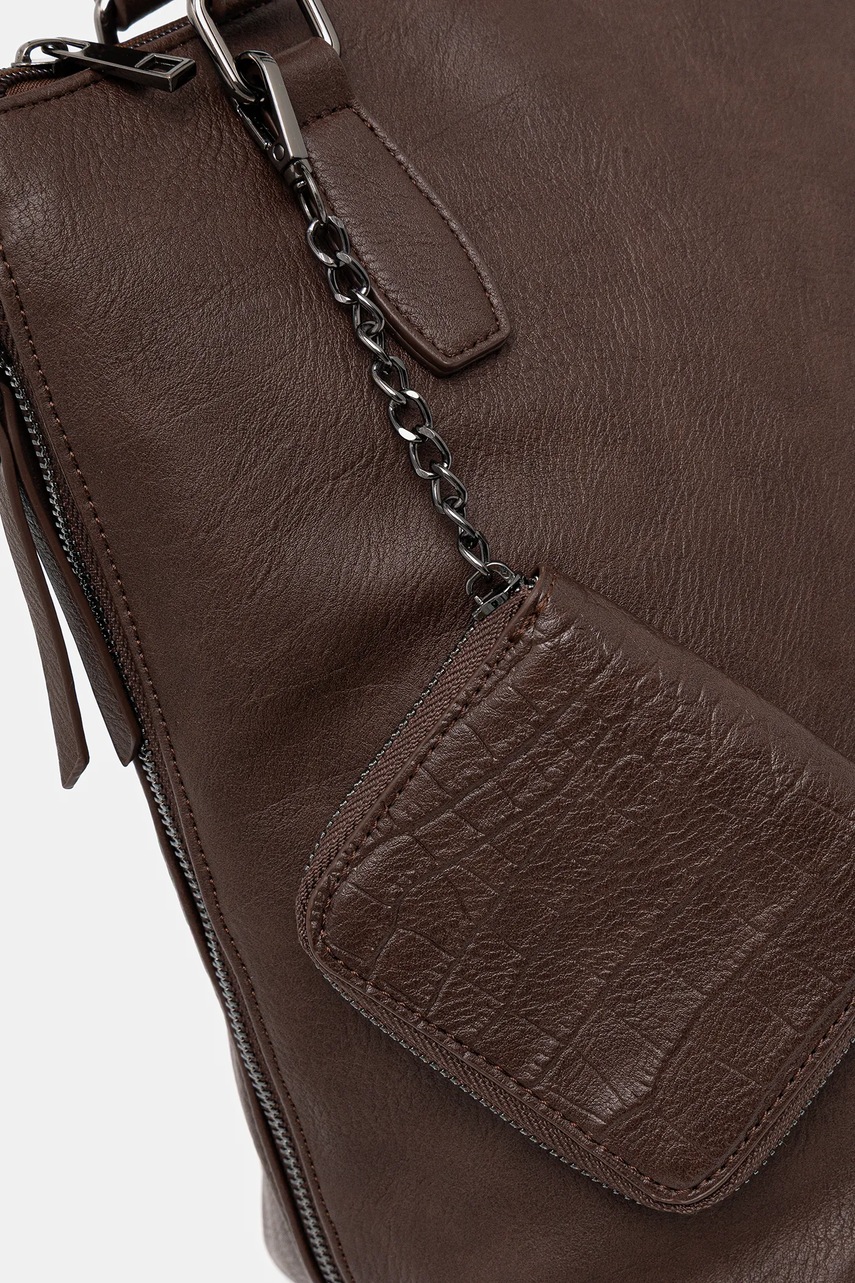 - Dołączona portmonetka z fakturowanego materiału z karabińczykiem, który umożliwia przypięcie do torebki.