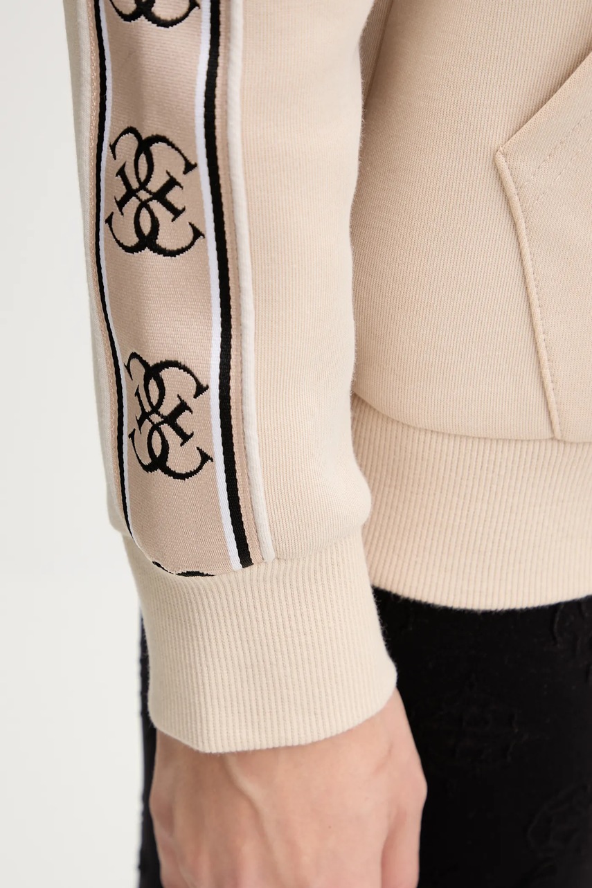 Guess bluza CARLA damska kolor beżowy z kapturem z aplikacją V4YQ11 KB3P2