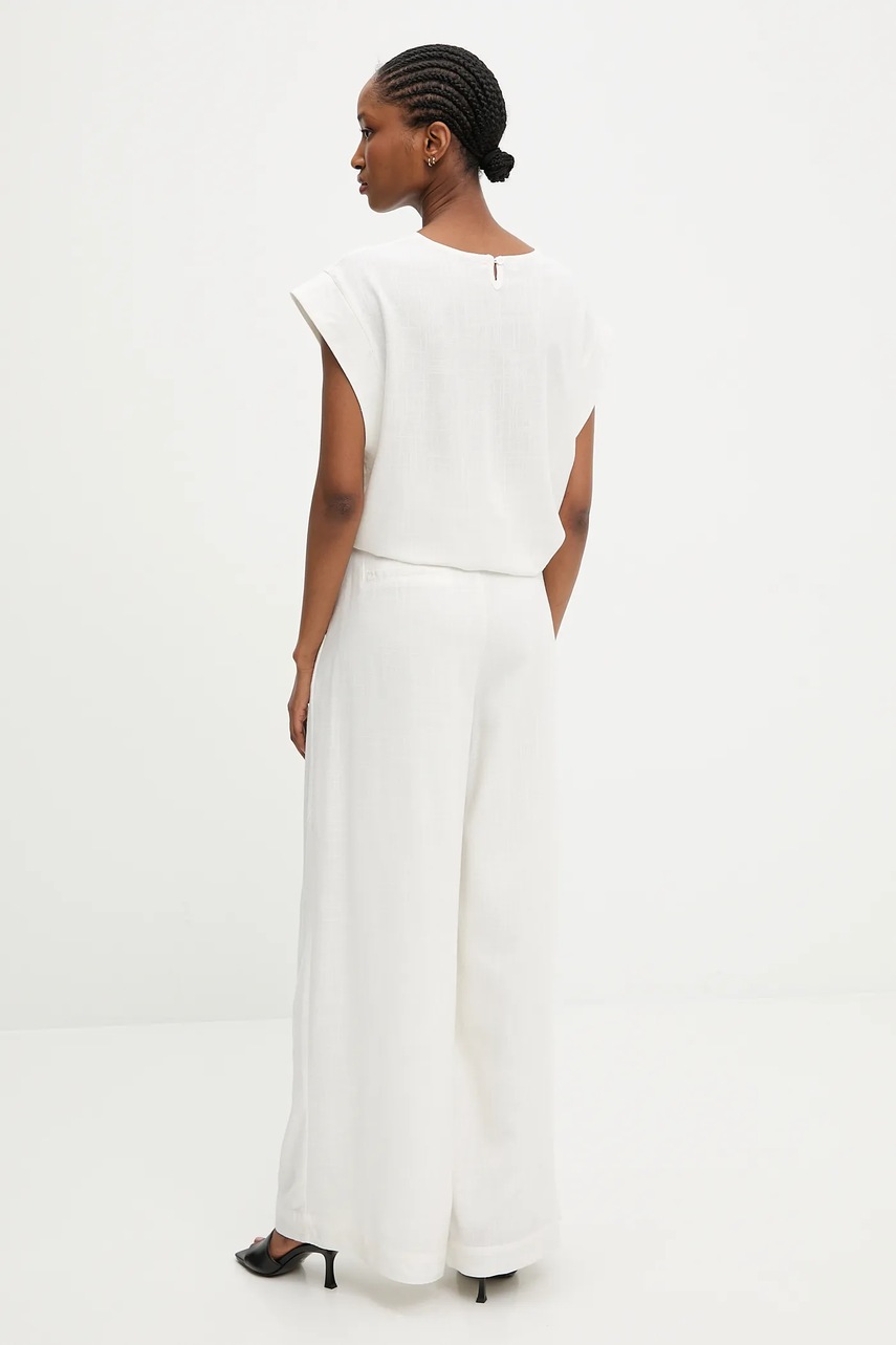 - Model z podwyższoną talią i zapięciem na guzik i suwak.