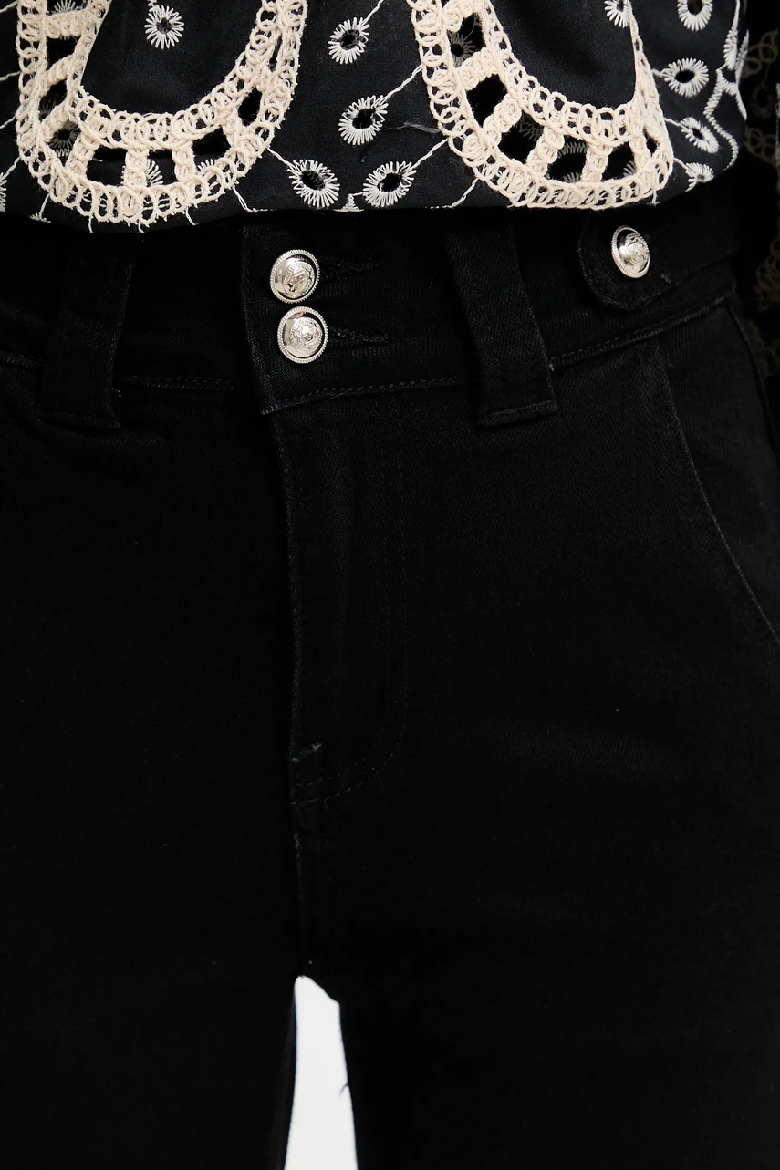 - Model z podwyższoną talią i zapięciem na guzik i suwak.