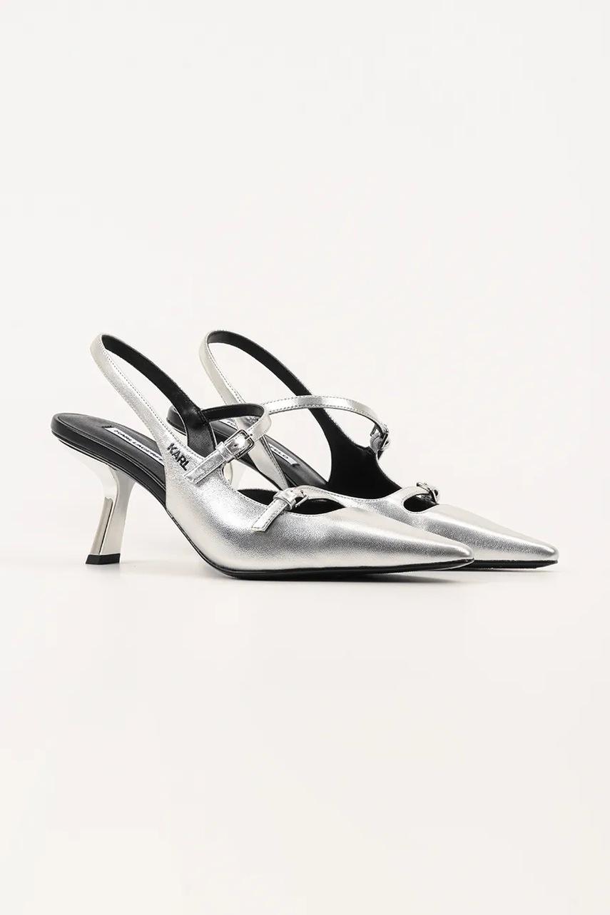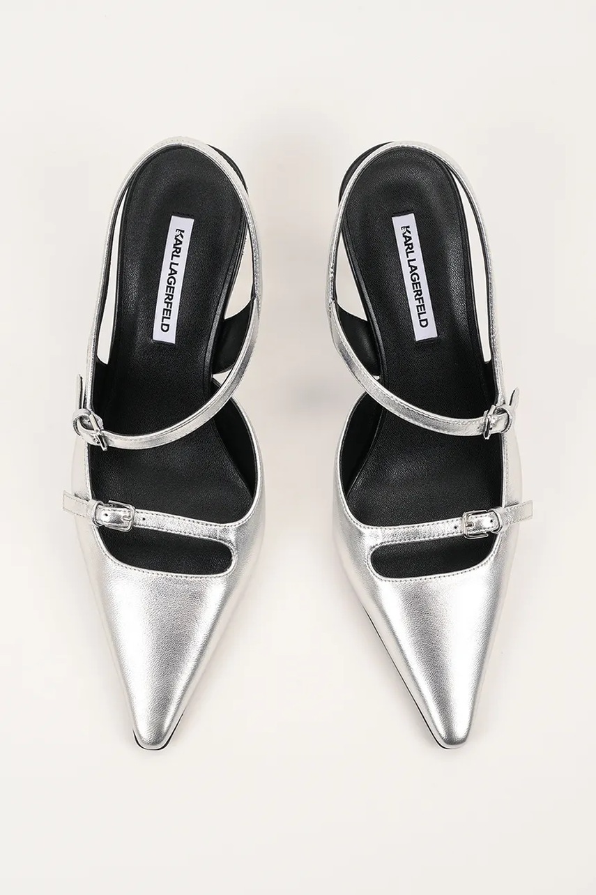 Karl Lagerfeld szpilki skórzane KARMEL kolor srebrny KL33623