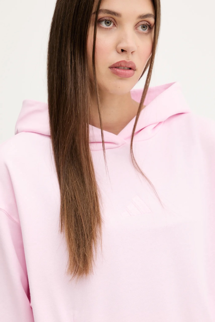 adidas bluza bawełniana All SZN damska kolor różowy z kapturem gładka JV7343