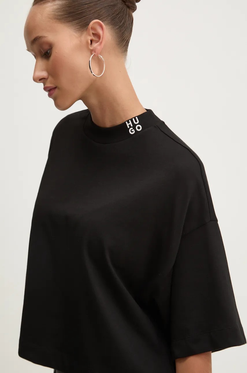 HUGO t-shirt bawełniany damski kolor czarny 50520187