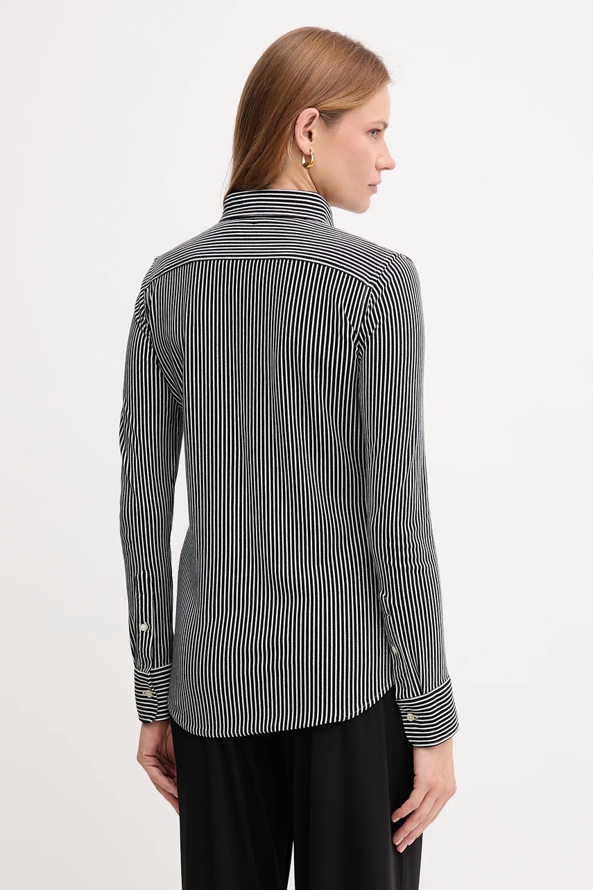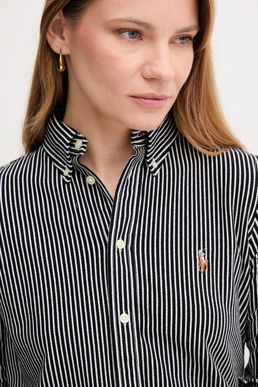 Polo Ralph Lauren koszula bawełniana damska kolor czarny slim z kołnierzykiem klasycznym 211910131