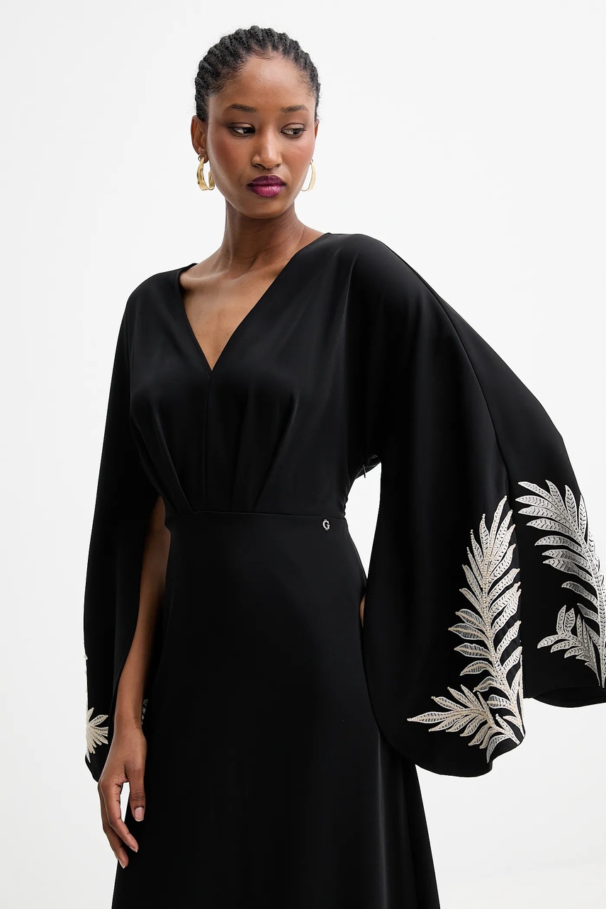 Guess sukienka ANGELE kolor czarny maxi rozkloszowana W5YK1A WHCU2