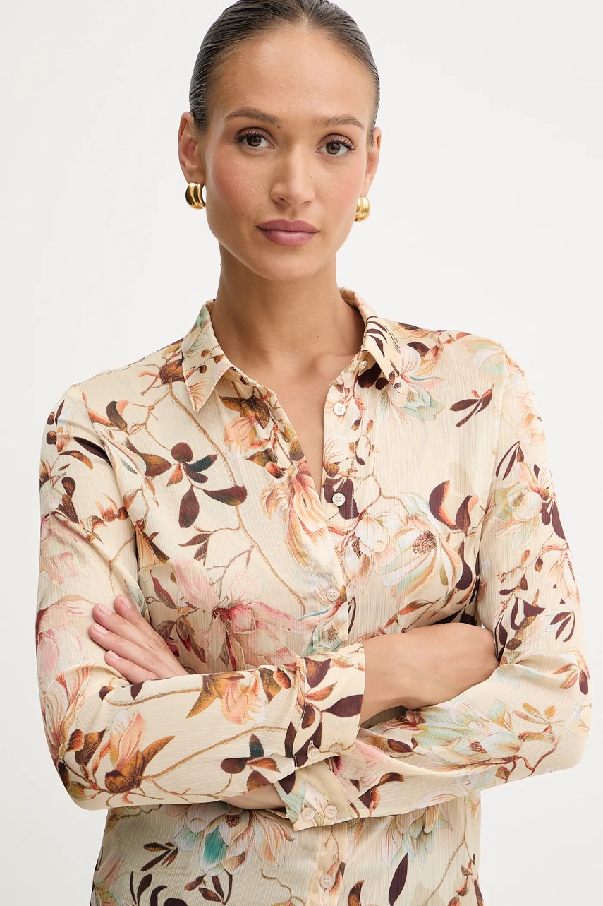 Guess koszula CLOUIS damska kolor beżowy regular z kołnierzykiem klasycznym W5YH0X WDW82