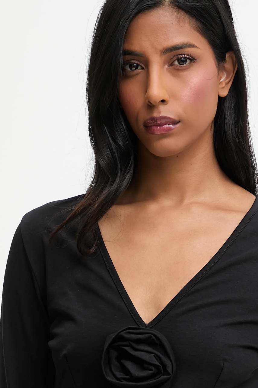 - Ozdobny, spiczasty dekolt.