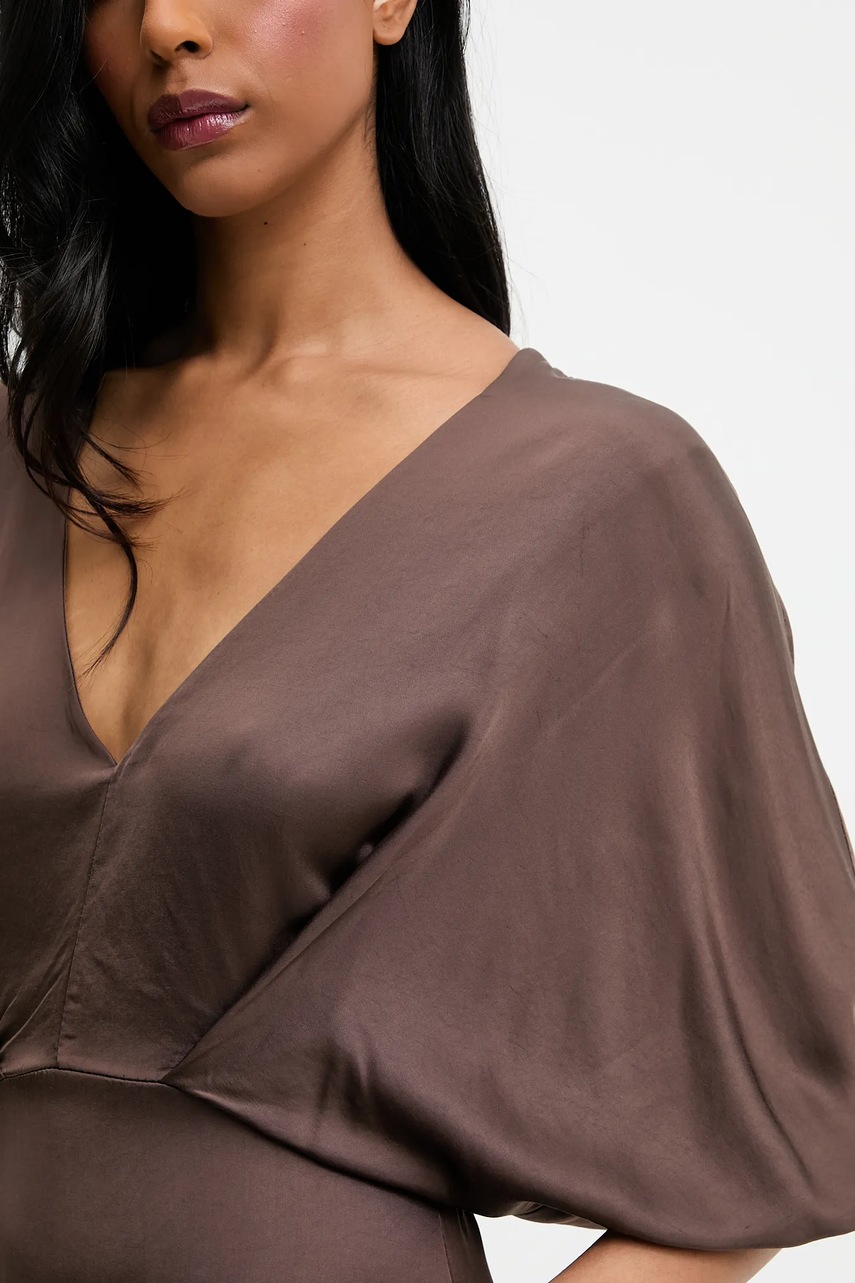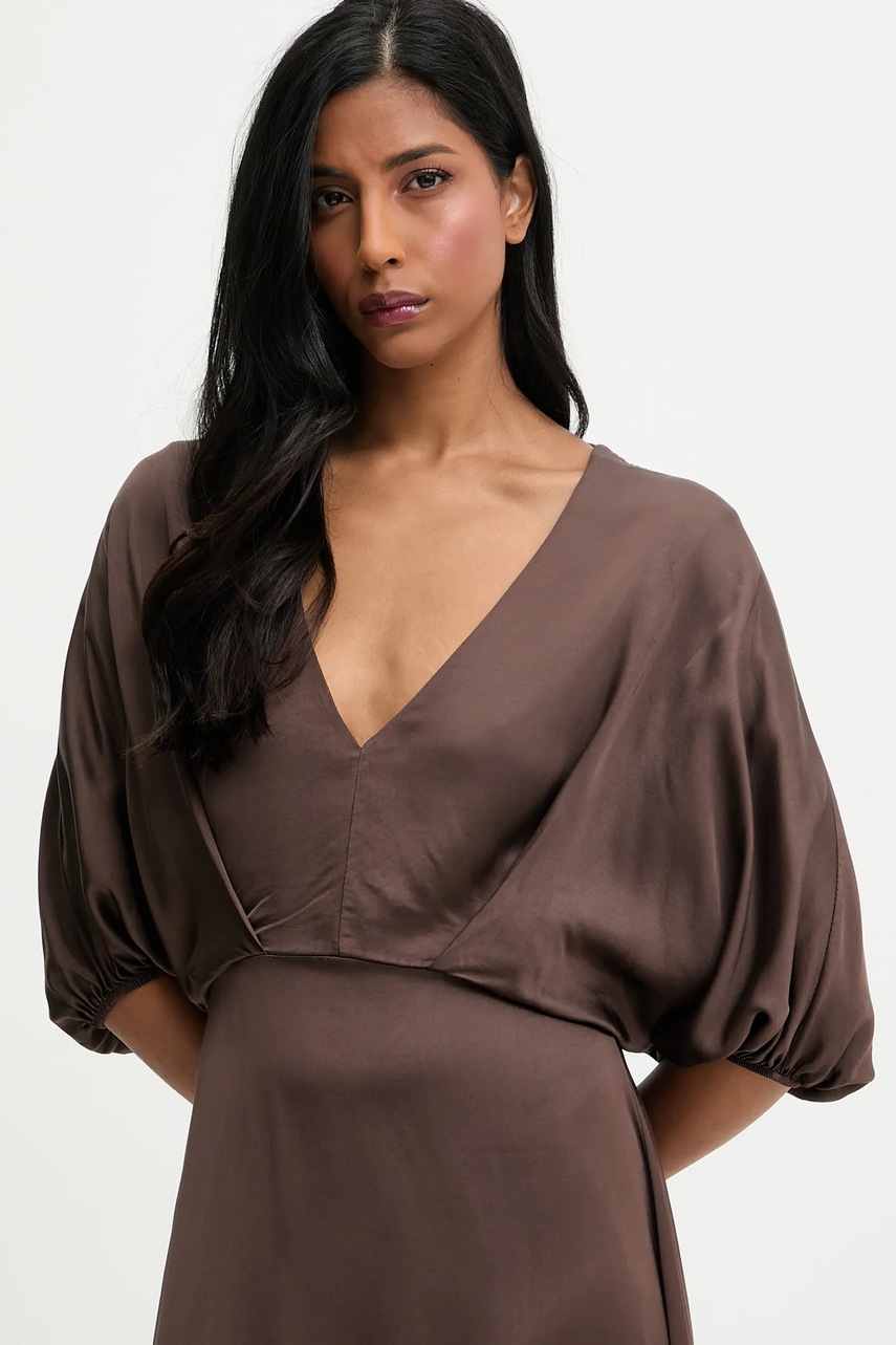 Answear.LAB sukienka kolor brązowy maxi rozkloszowana
