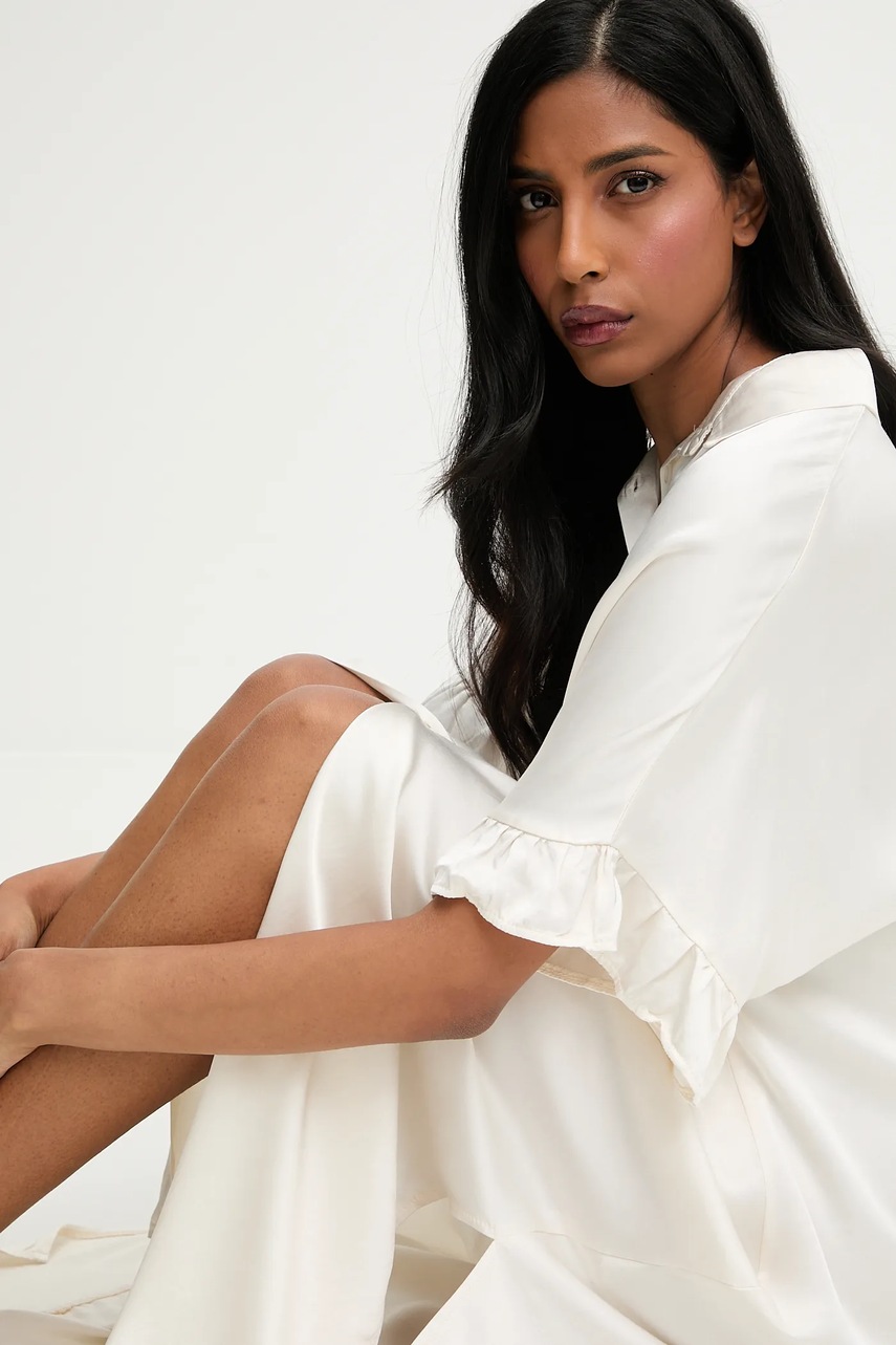 Answear.LAB sukienka kolor beżowy maxi prosta