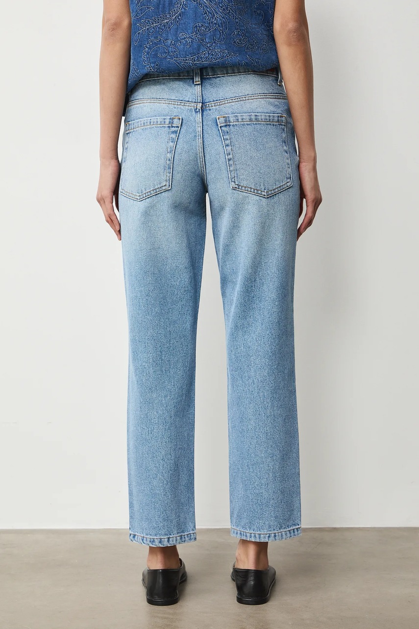 - Fason boyfriend - jeansy o luźniejszej formie z delikatnie zwężającymi się nogawkami. Niekiedy sprawiają wrażenie za dużych, jednak jest to celowy efekt, który sprawia, że stylizacja wygląda swobodnie i casualowo, zapewniając przy tym wygodę i komfort noszenia.