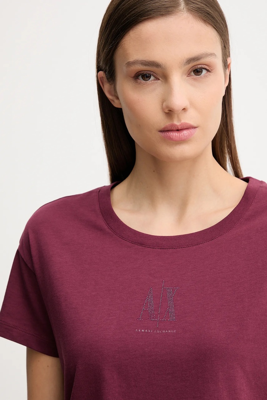 Armani Exchange t-shirt bawełniany damski kolor bordowy XW000830 AF10356
