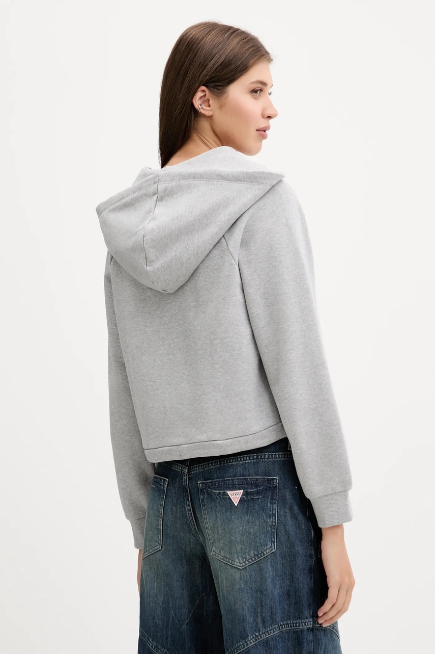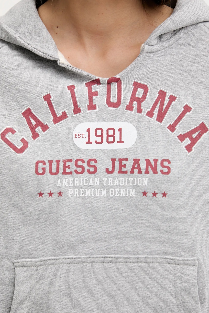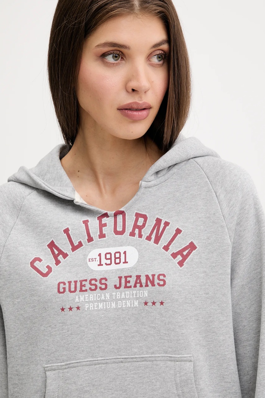 Guess Jeans bluza bawełniana damska kolor szary z kapturem z nadrukiem W5YQ14 KCPR1